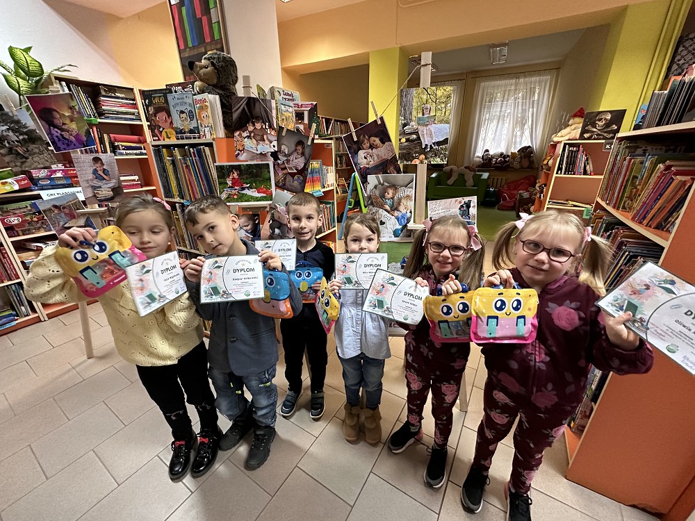 Dnia 18 listopada 2025 r. dzieci z jaroszowskiego przedszkola udały się na wycieczkę do Biblioteki Publicznej Miasta i Gminy Strzegom na zaproszenie Publicznego Przedszkola nr 3 w Strzegomiu, aby odebrać nagrody i wyróżnienia zdobyte w konkursie fotograficznym ph. „Przyłapani z książką”.