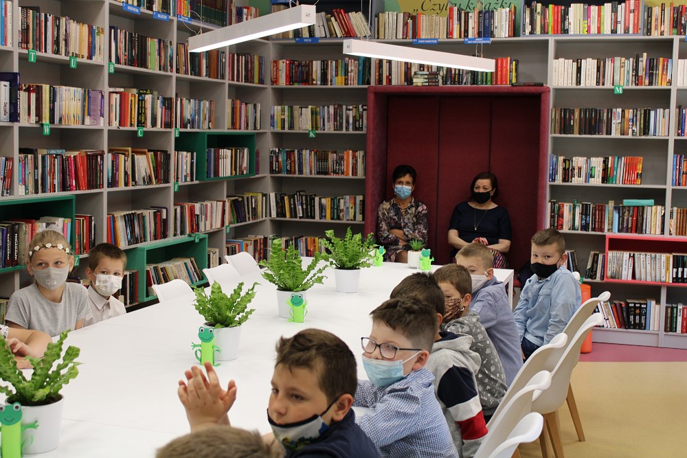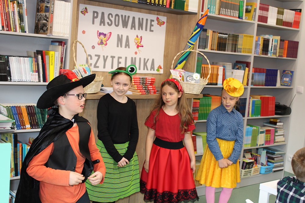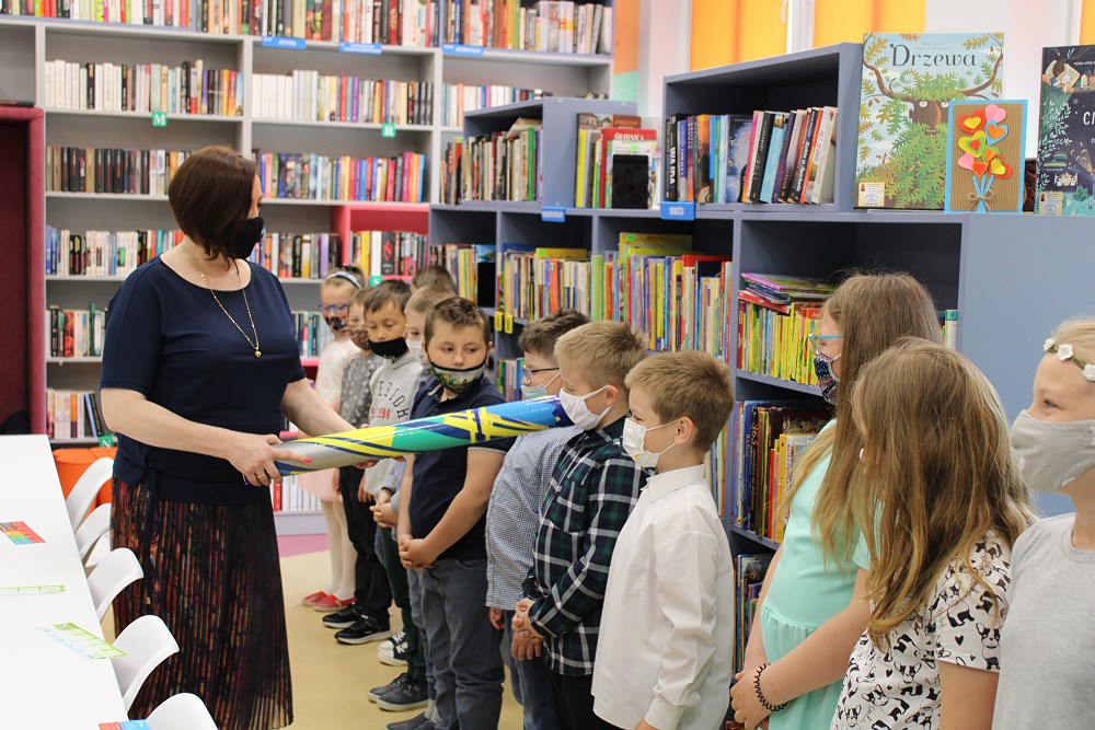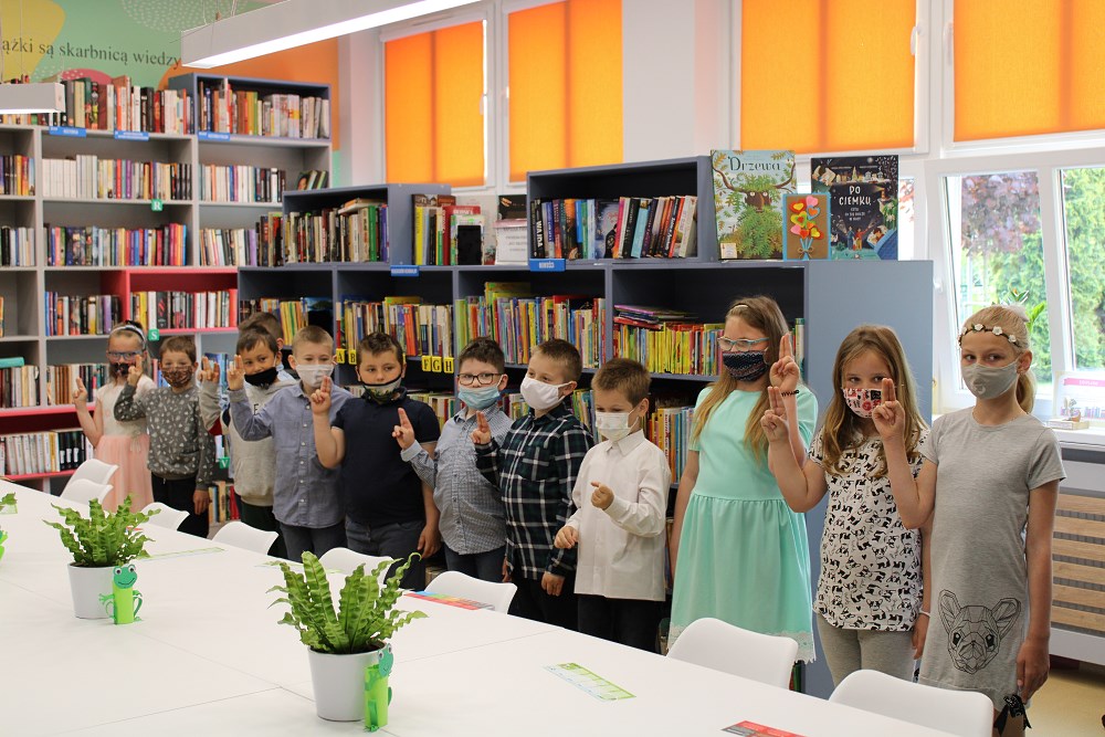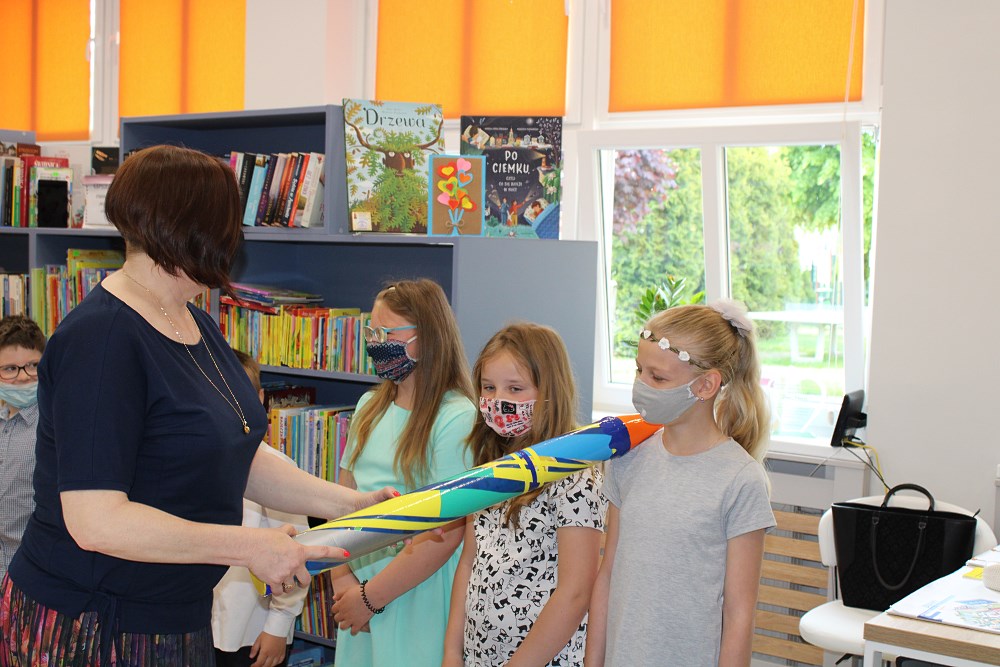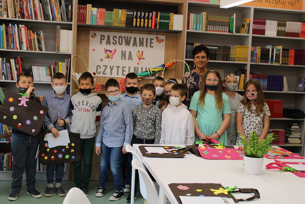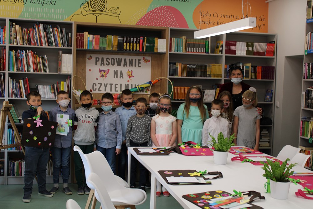 W piątek – 21.05.2021 - w nowej siedzibie biblioteki szkolnej została zorganizowana uroczystość Pasowania Drugoklasistów na Czytelników.