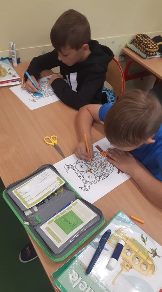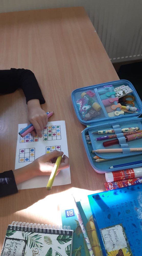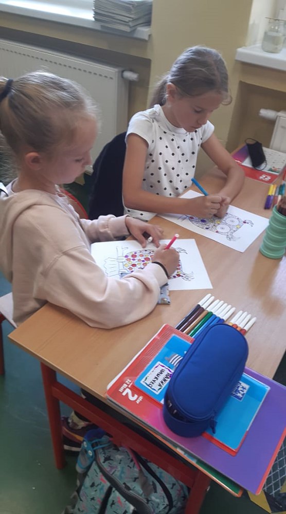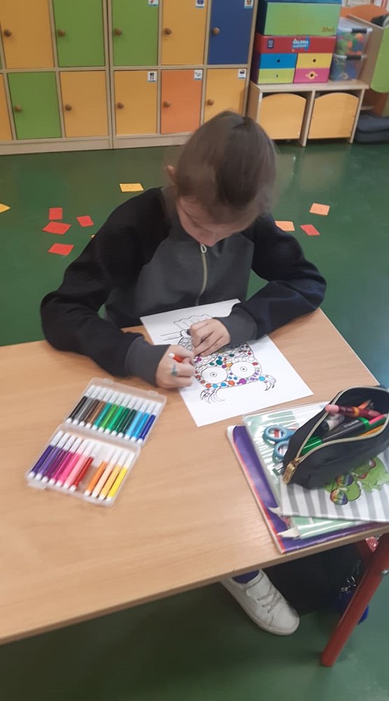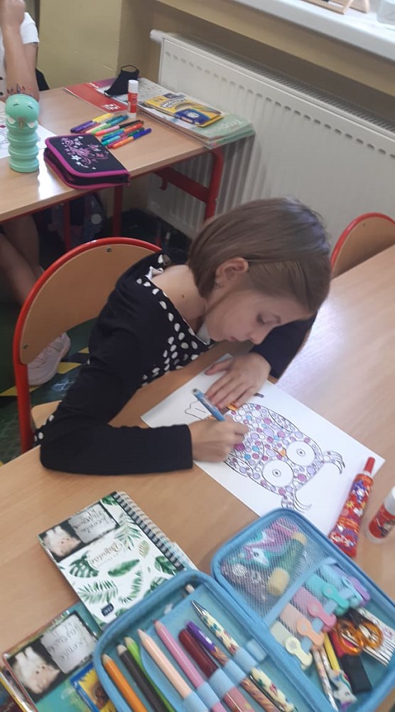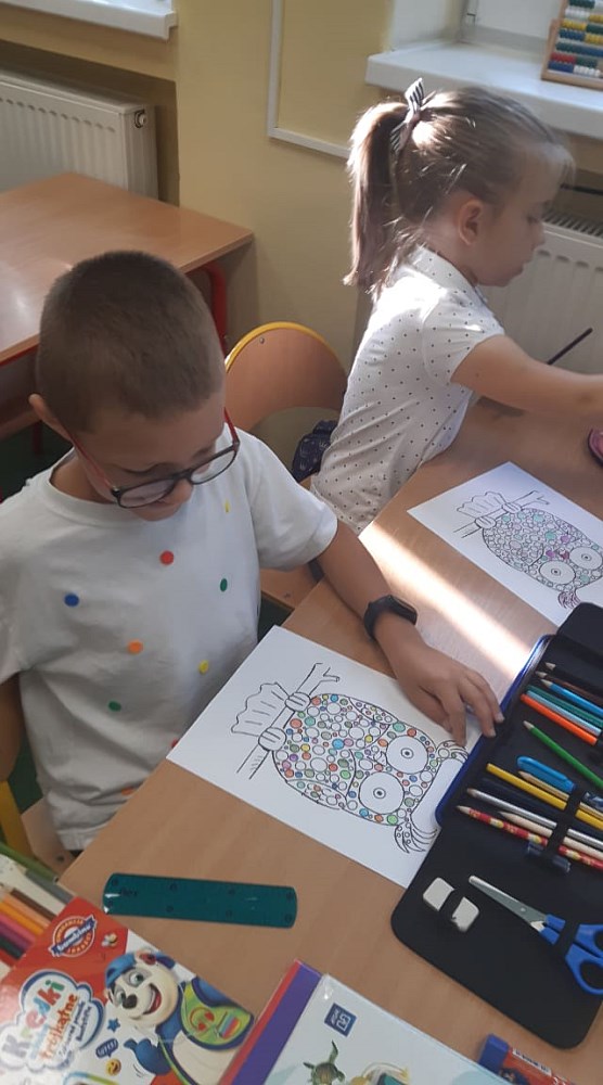Następnie ozdabiali kreatywne sowy, rozwiązywali kropkowe sudoku oraz rozszyfrowali kropkowe hasła. Na zajęciach artystycznych dzieci wykonały „kropkowane” prace plastyczne, według własnych pomysłów. Było wesoło, ciekawie i emocjonująco, a wielu uczniów zadbało również o to, by na elementach garderoby pojawiły się kropki.