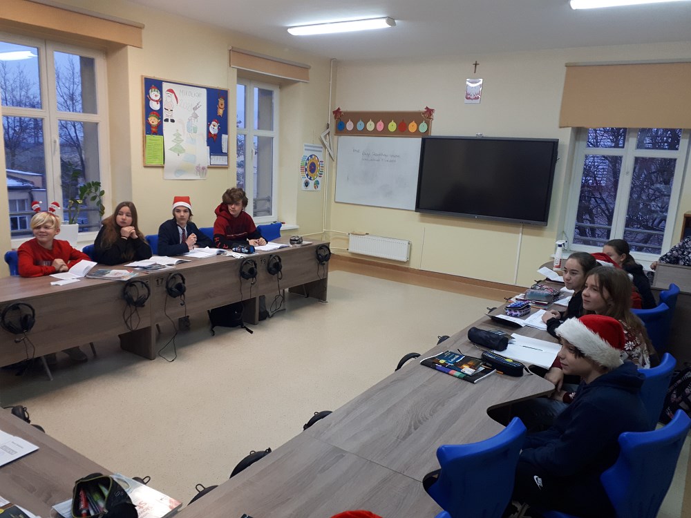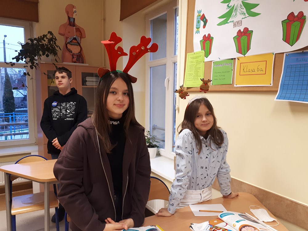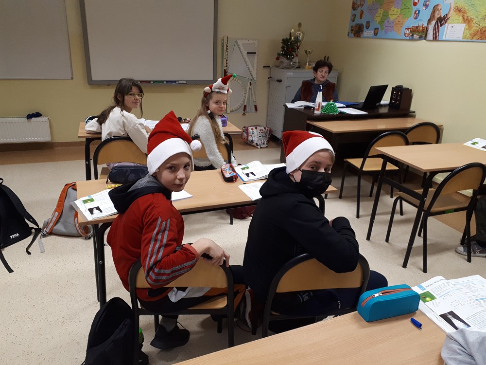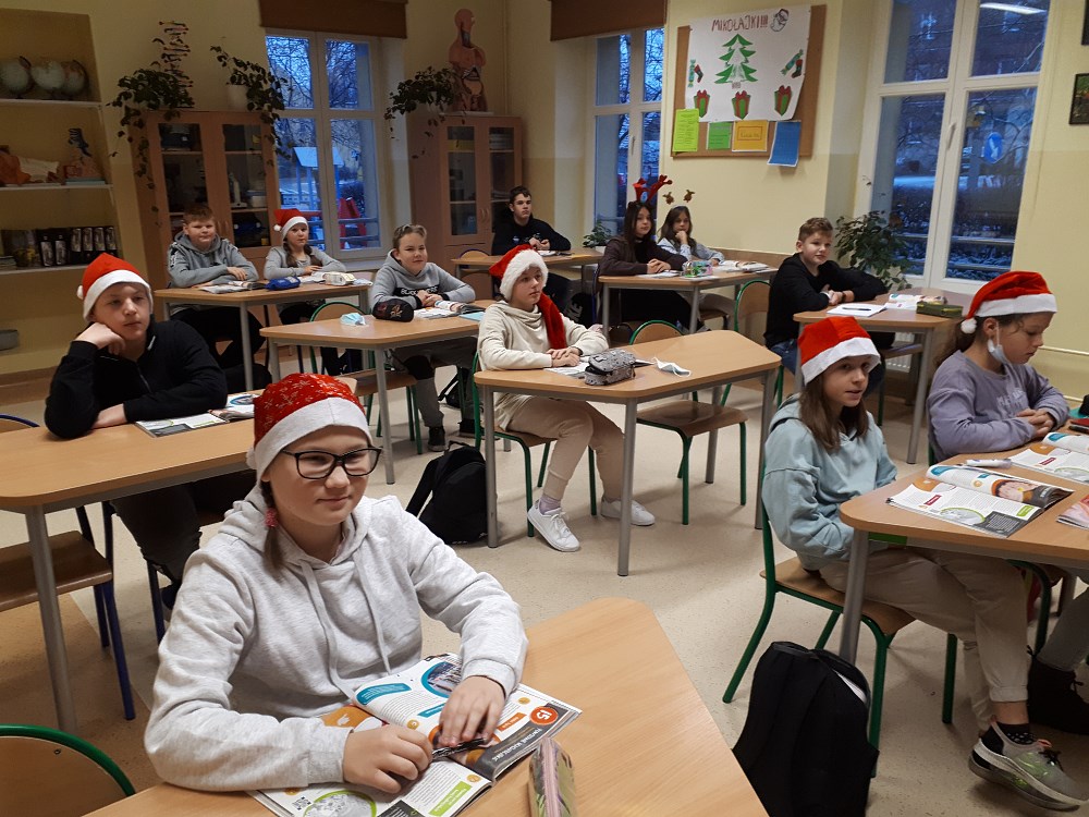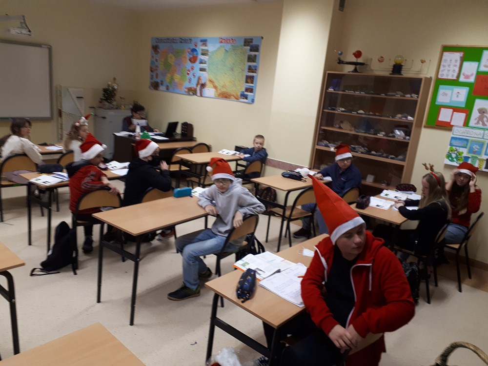 Orszak św. Mikołaja wraz z dyrektor szkoły – Beatą Jankiewicz odwiedził uczniów w klasach, a Śnieżynki i Mikołajki wręczyły im słodki poczęstunek. Uczniowie oraz niektórzy nauczyciele także przyłączyli się do zabawy, ubierając wyjątkowe przebrania.