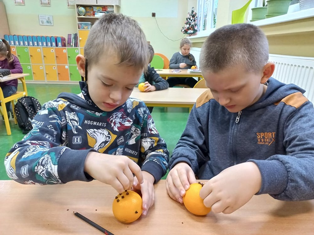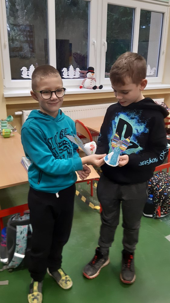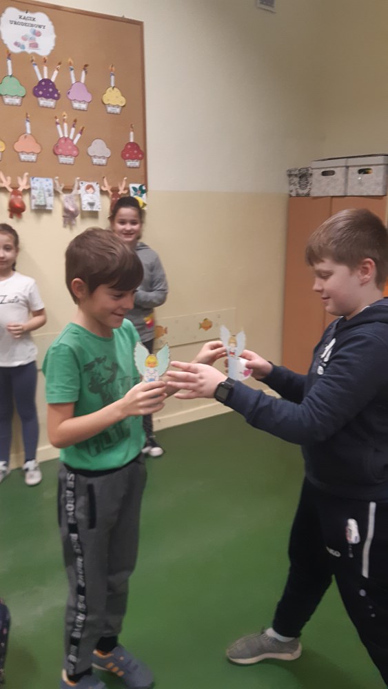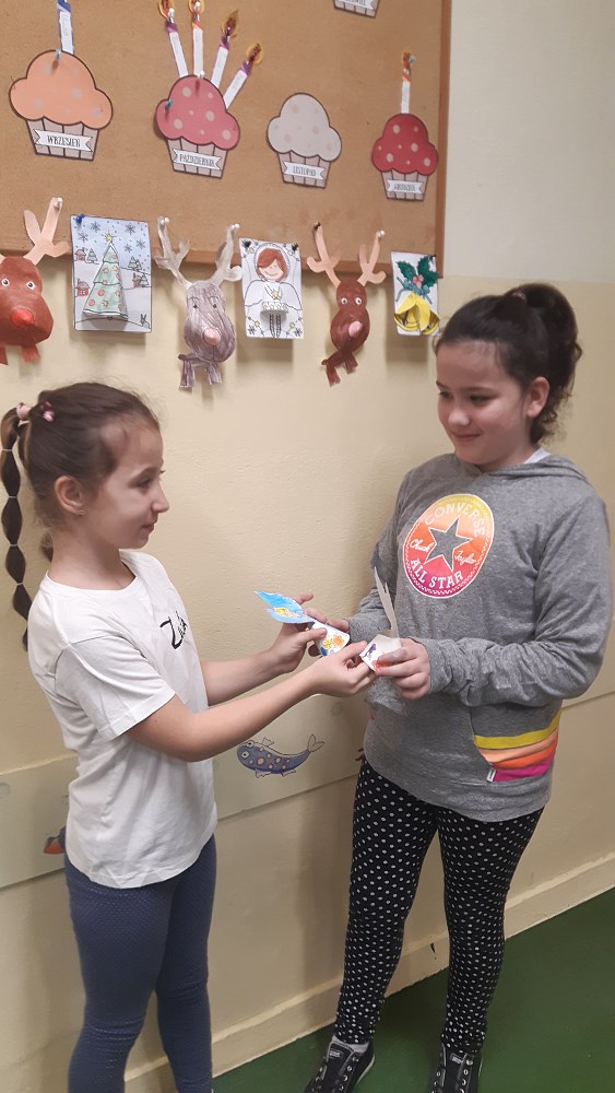 W ramach akcji, uczniowie z klas I - III przygotowali dekoracje, ozdoby świąteczne, kartki z życzeniami, którymi się wymieniali myśląc o osobach z Rodziny, przyjaciołach i sąsiadach.