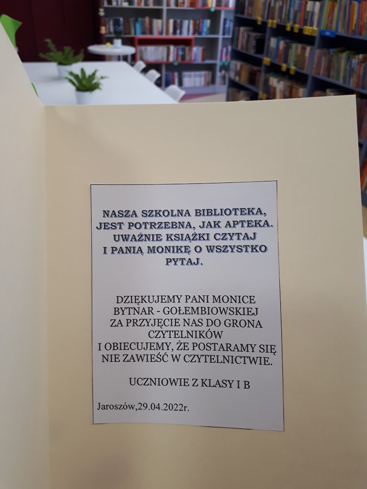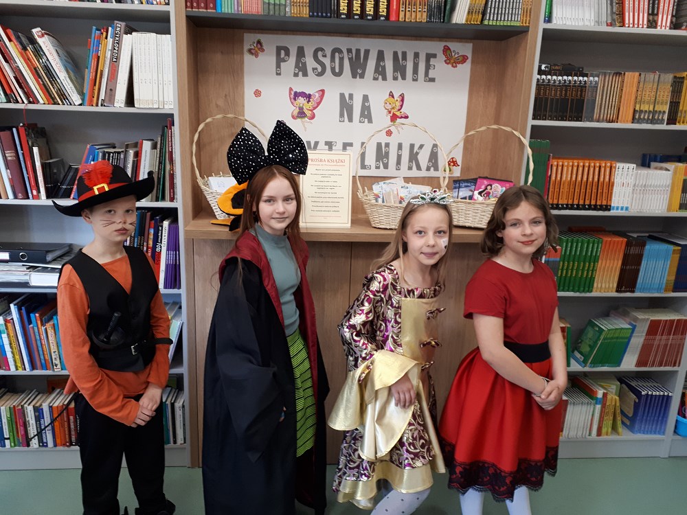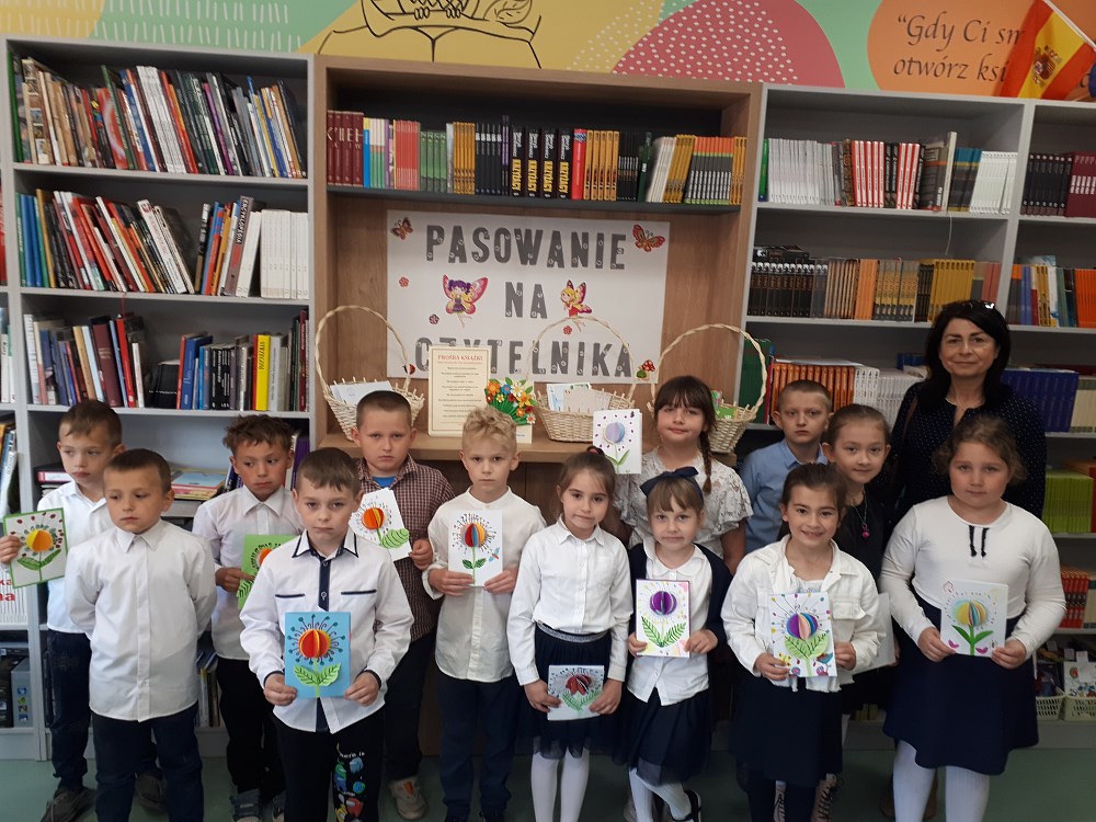 W dwóch odsłonach - 29 kwietnia (kl. 1b) i 6 maja br. (kl.1a) - w bibliotece szkolnej Zespołu Szkolno – Przedszkolnego w Jaroszowie zostały zorganizowane uroczystości Pasowania Pierwszoklasistów na Czytelników.