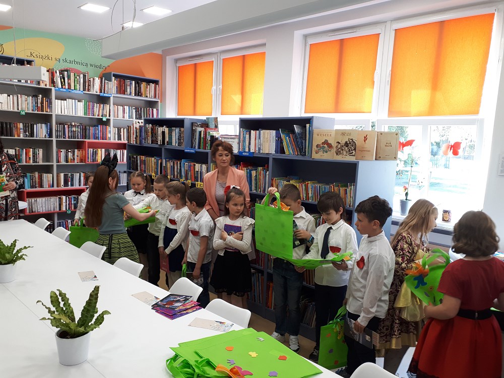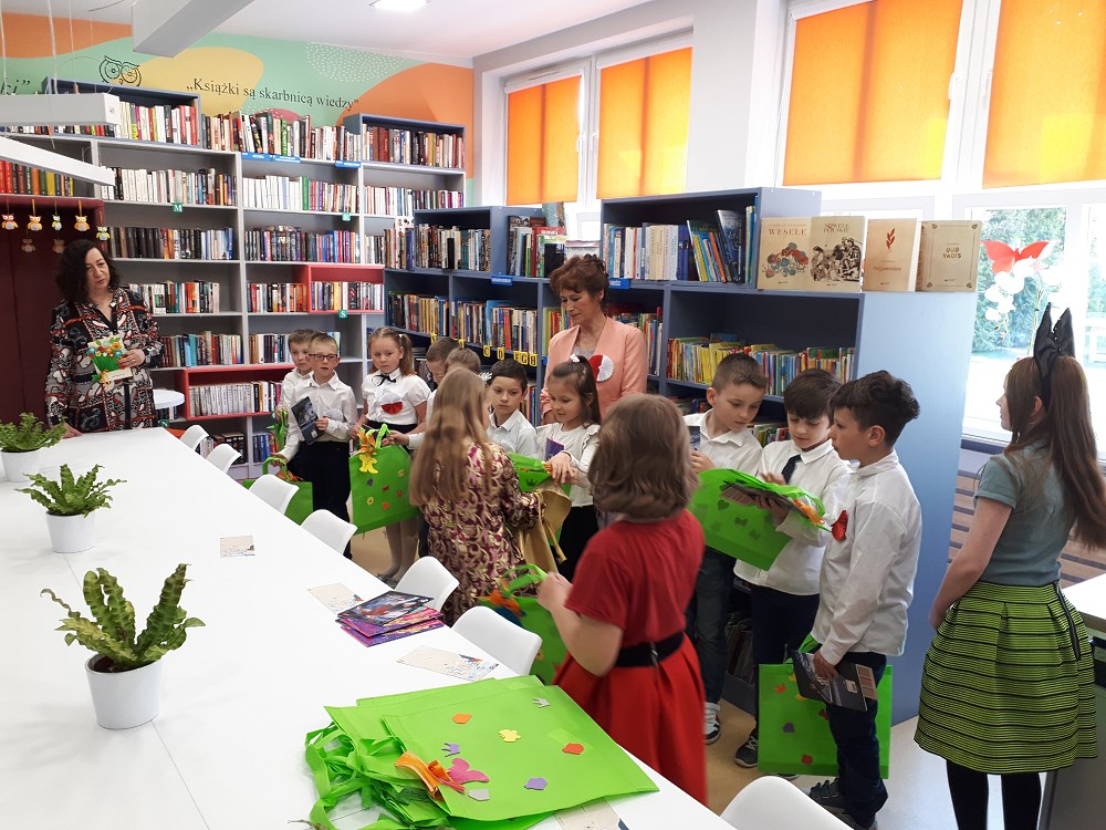 Uczniowie otrzymali tradycyjne zeszyty biblioteczne, zakładki do książek, wyjątkowo ozdobione torby, w których otrzymają podręczniki do klasy drugiej oraz pamiątkowe listy dla Rodziców.