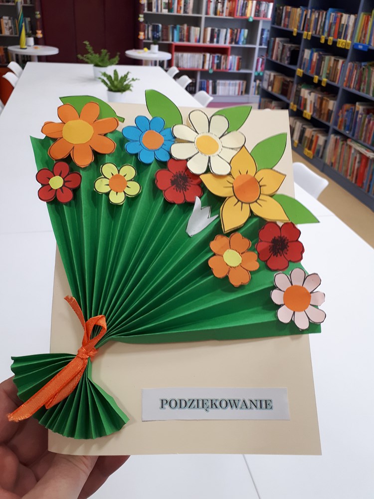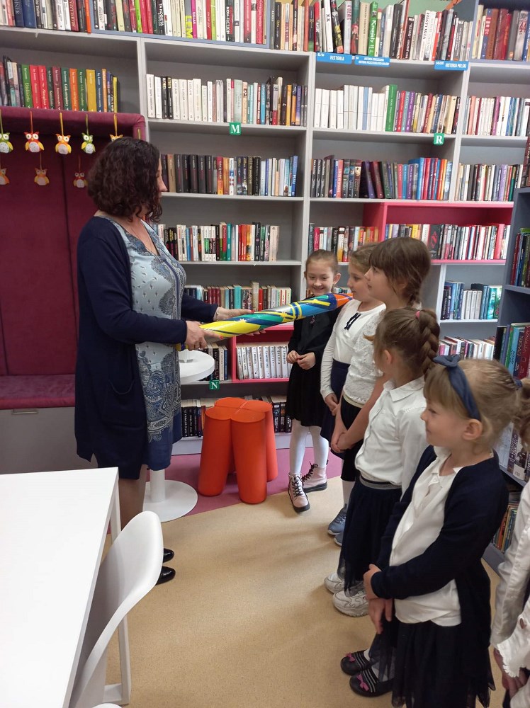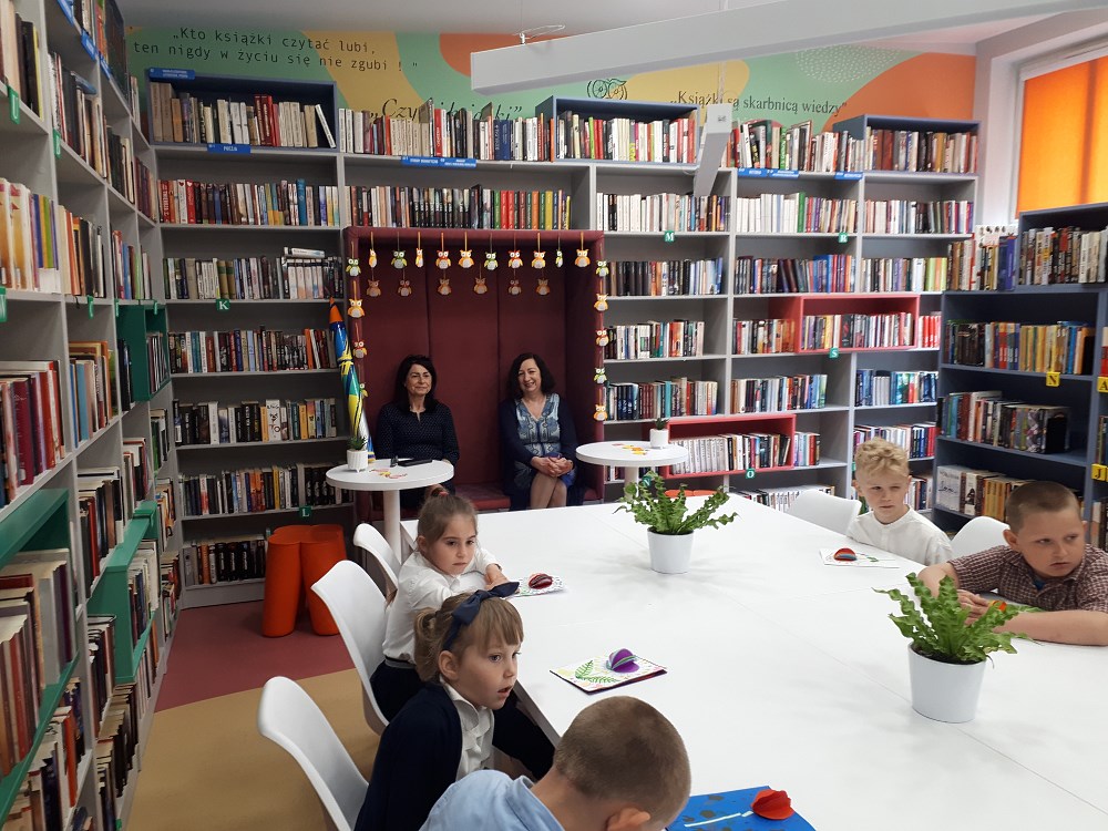 Dzieci przygotowały wraz ze swoimi wychowawczyniami - Bożeną Wilczak i Elżbietą Szczepanik - pamiątkowe laurki dla pani dyrektor i pani bibliotekarki Moniki Bytnar – Gołembiowskiej.