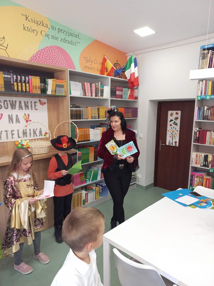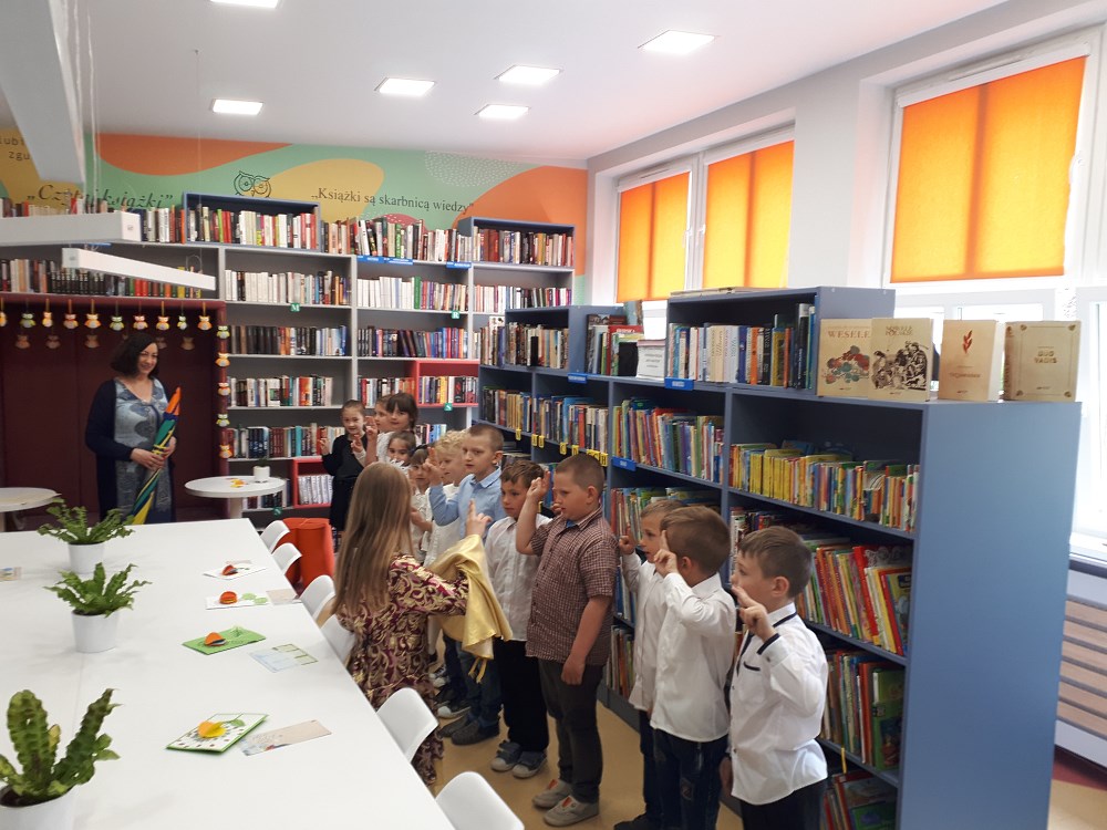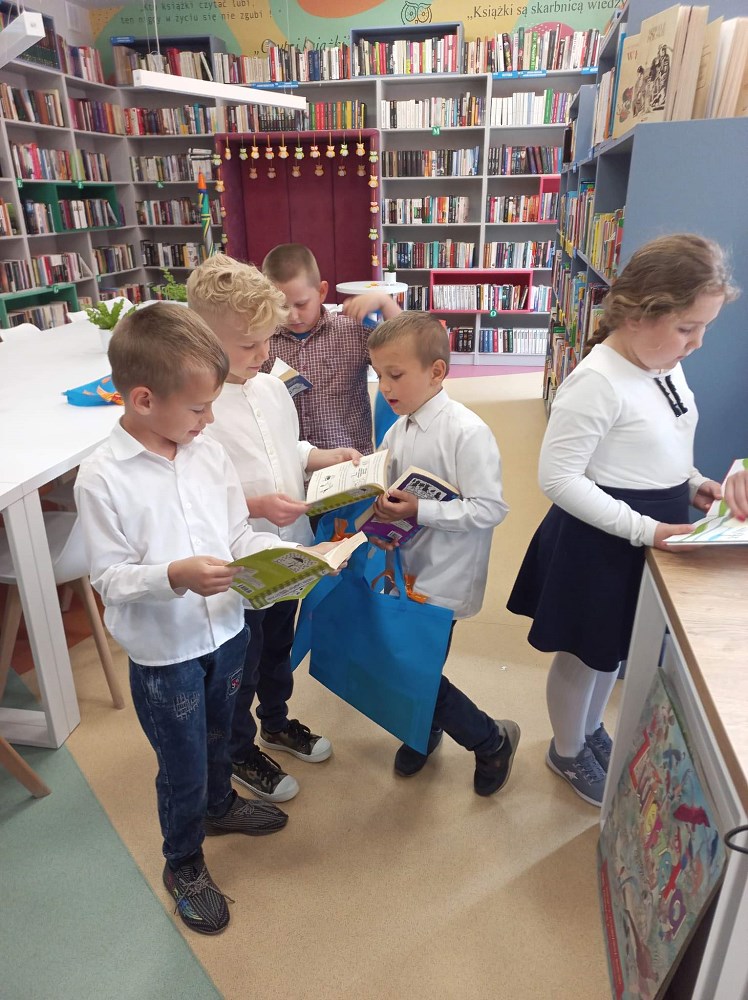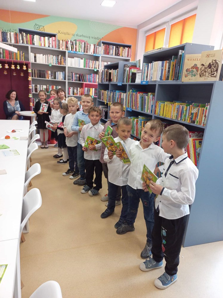 Pierwszoklasistom bardzo podobało się to, co zostało dla nich przygotowane. Chętnie brali udział w konkursie literackim oraz wysłuchali popisów recytatorskich uczniów z aktywu bibliotecznego, a na koniec wypożyczali książki z księgozbioru bibliotecznego.