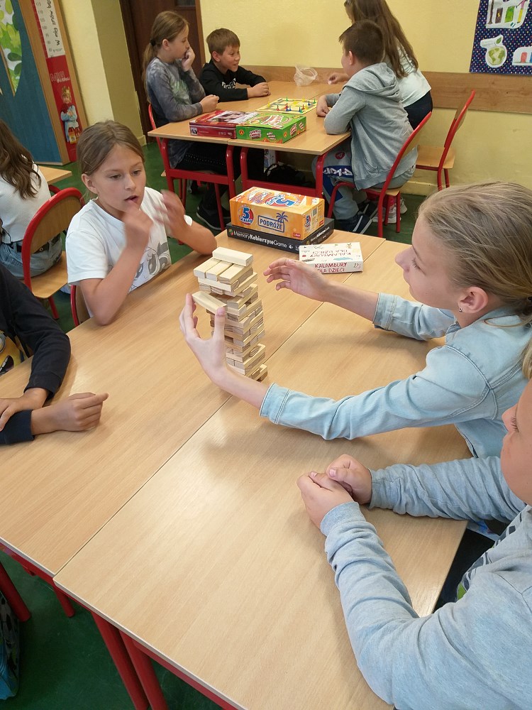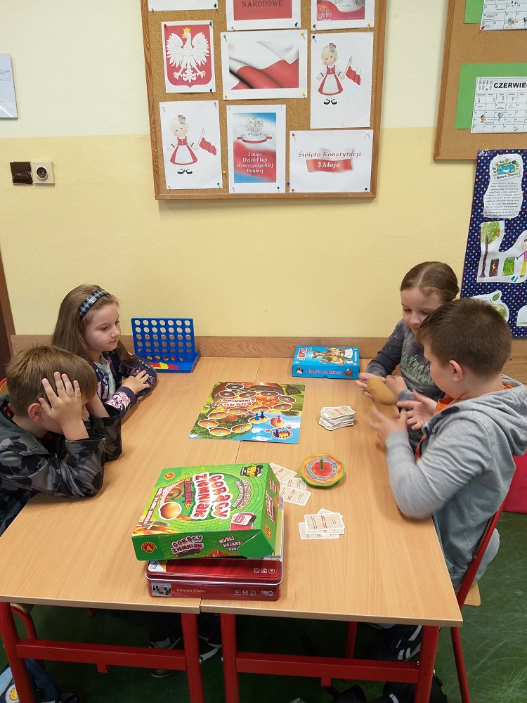 W salach lekcyjnych dzieci grały w gry planszowe, kalambury i wszyscy wspaniale się bawili. Uczniowska radość i pogoda ducha wypełniły szkolne sale. Uczniowie obejrzeli w sali gimnastycznej przedstawienia teatralne przygotowane przez dzieci przedszkolne. Były zabawy ruchowe na boisku. Uczniowie chętnie też puszczali latawce. Oby uśmiechy takie jak tego dnia, zawsze gościły na twarzach uczniów.