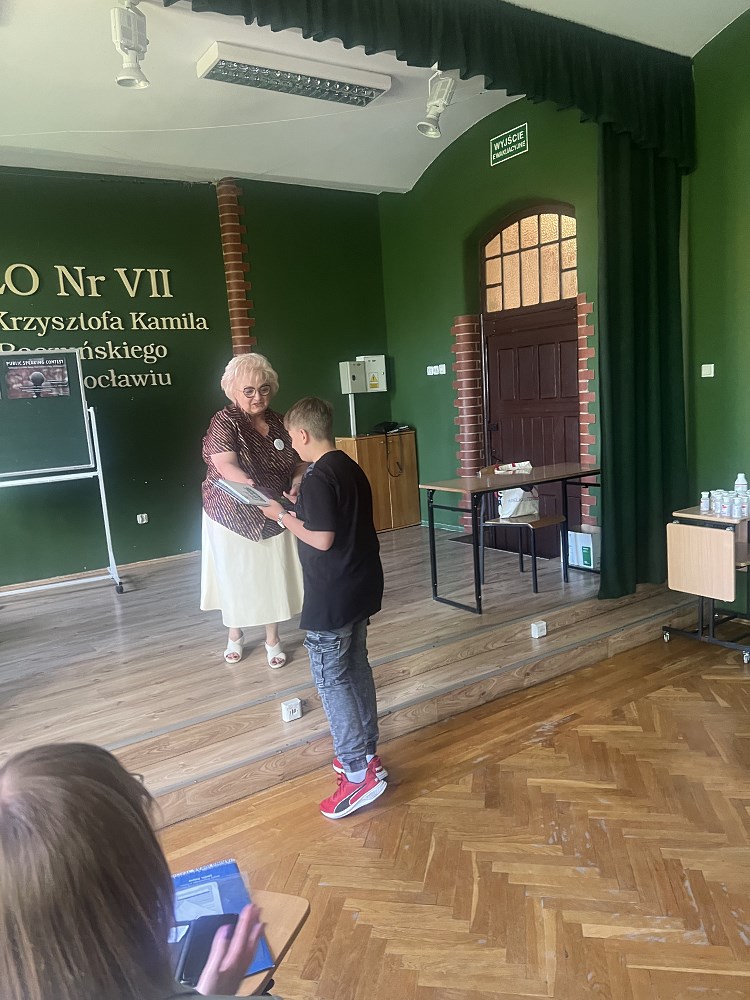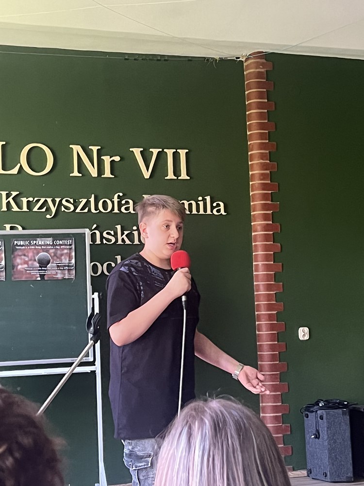 Ten konkurs jest dla uczniów uzdolnionych humanistycznie, głównie językowo. Przemek od kilku lat bardzo intensywnie uczy się języka angielskiego i stara się pracować nad pokonywaniem swoich słabości podczas występów publicznych. Takich umiejętności wymagał od niego właśnie ten konkurs. Przemowa w języku angielskim na zadany temat. Swoim wystąpieniem poruszył widownię i jury. Mówił o dobrym nastawieniu do życia, które odgrywa w nim ogromną rolę.