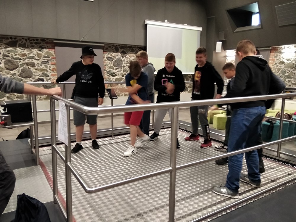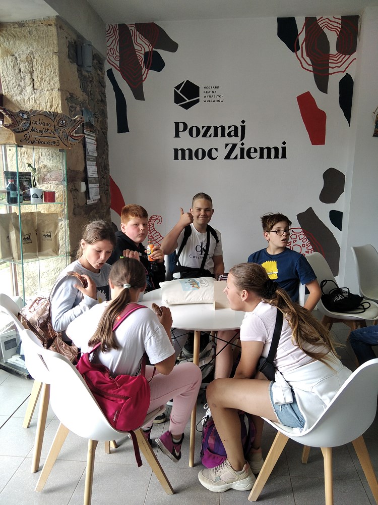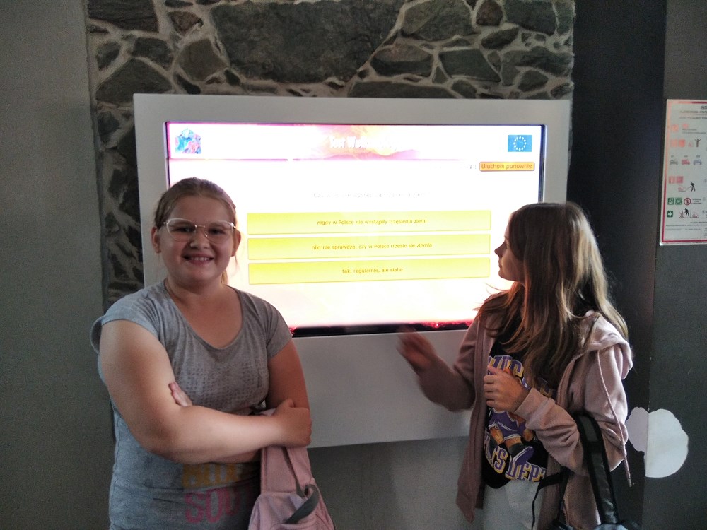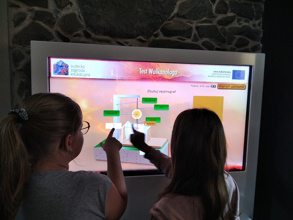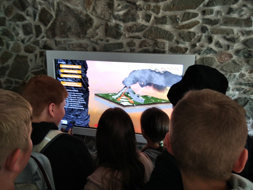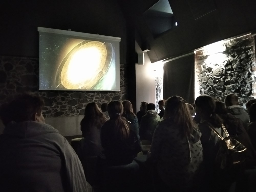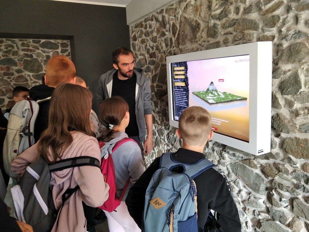 Po krótkim filmie o regionie, typach skał, powstaniu wulkanów uczniowie obejrzeli wystawę minerałów w Sali Ziemi, następnie zapoznali się z interaktywną makietą regionu Gór i Pogórza Kaczawskiego, obejrzeli wnętrza różnych wulkanów. Wśród przygotowanych dla młodzieży atrakcji był „Symulator trzęsienia ziemi", z którego oczywiście wszyscy skorzystali. Uczniowie uczestniczyli w warsztatach laboratoryjnych „Cztery żywioły - ogień“, na których przeprowadzali niesamowite eksperymenty: tworzyli „ogniste węże faraona”, wykonali wybuchową erupcję modelu wulkanu, zobaczyli płonącą dłoń.