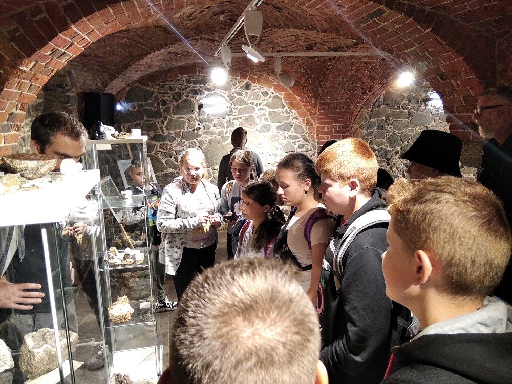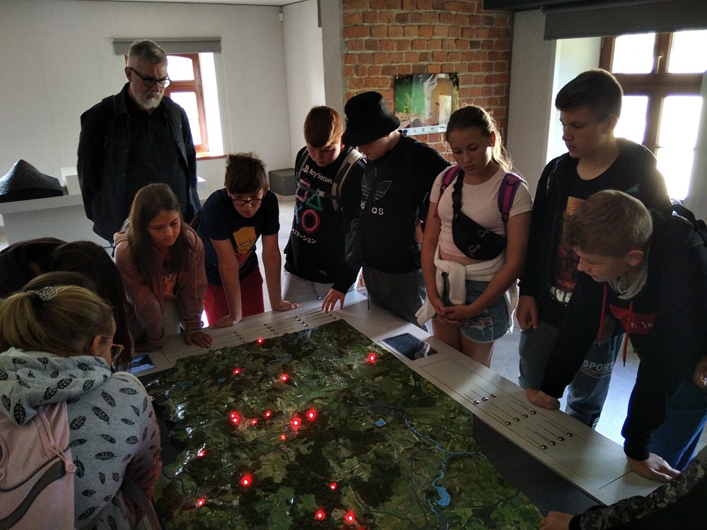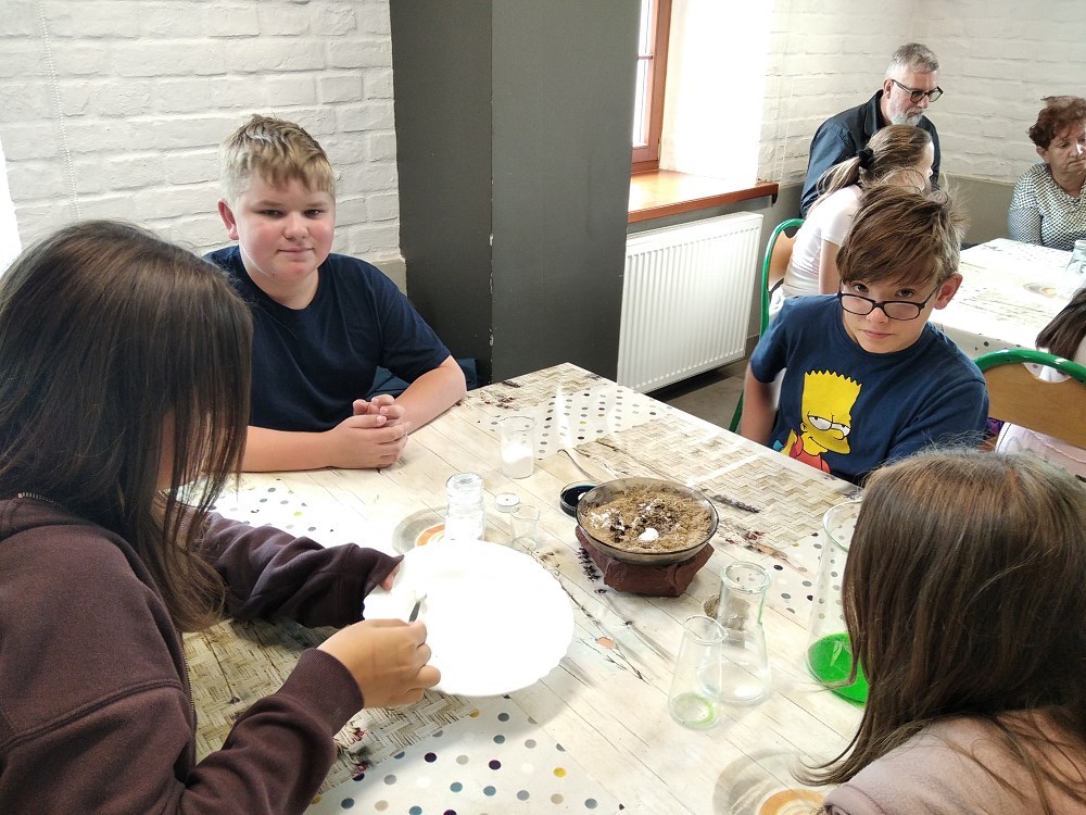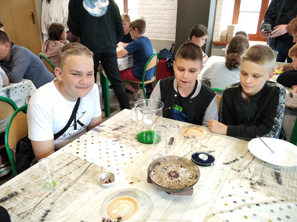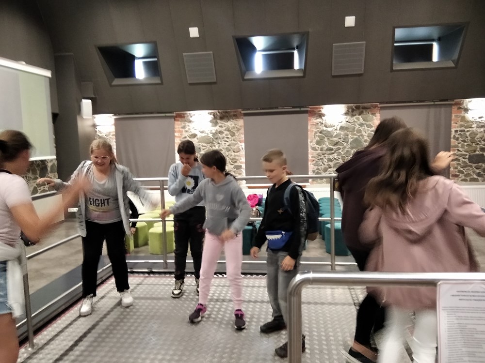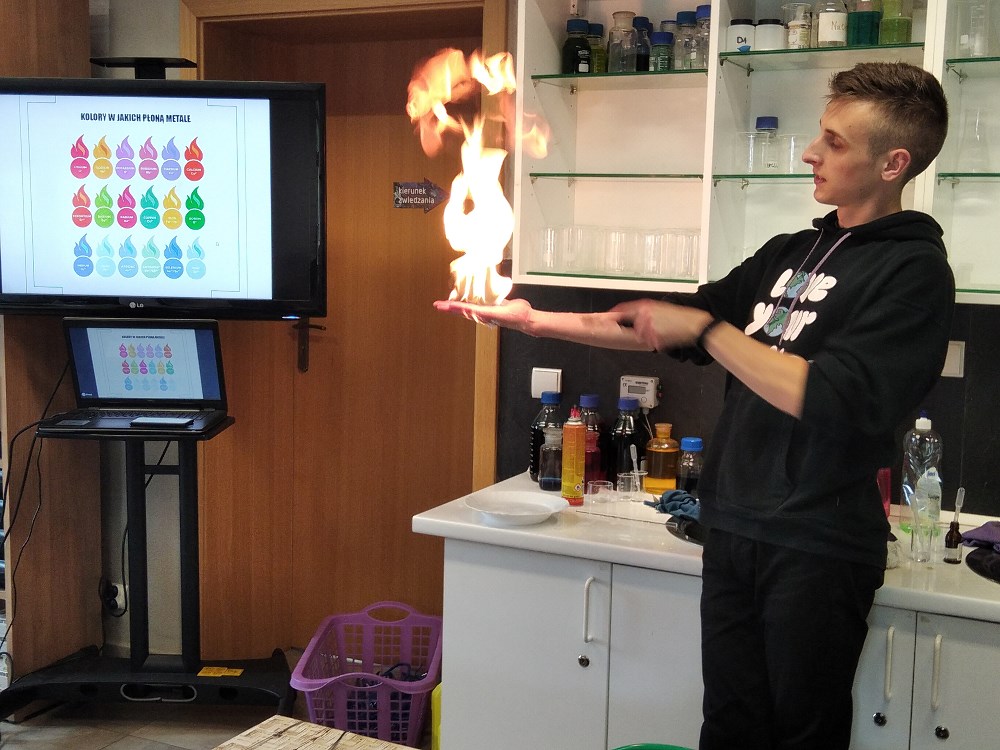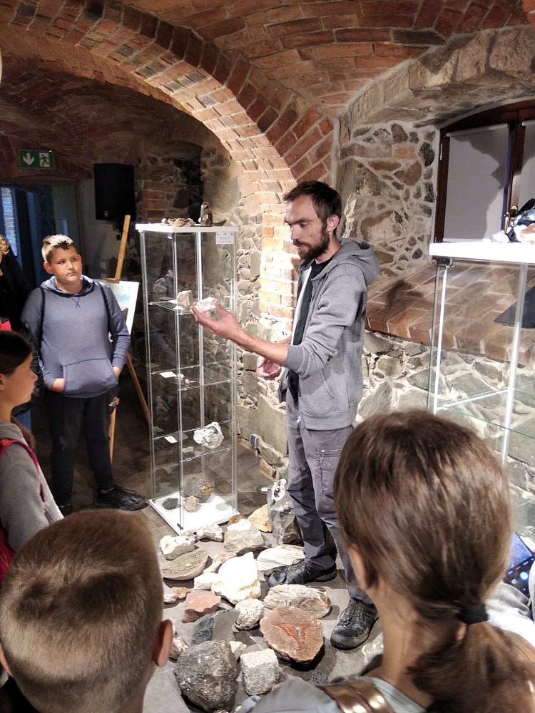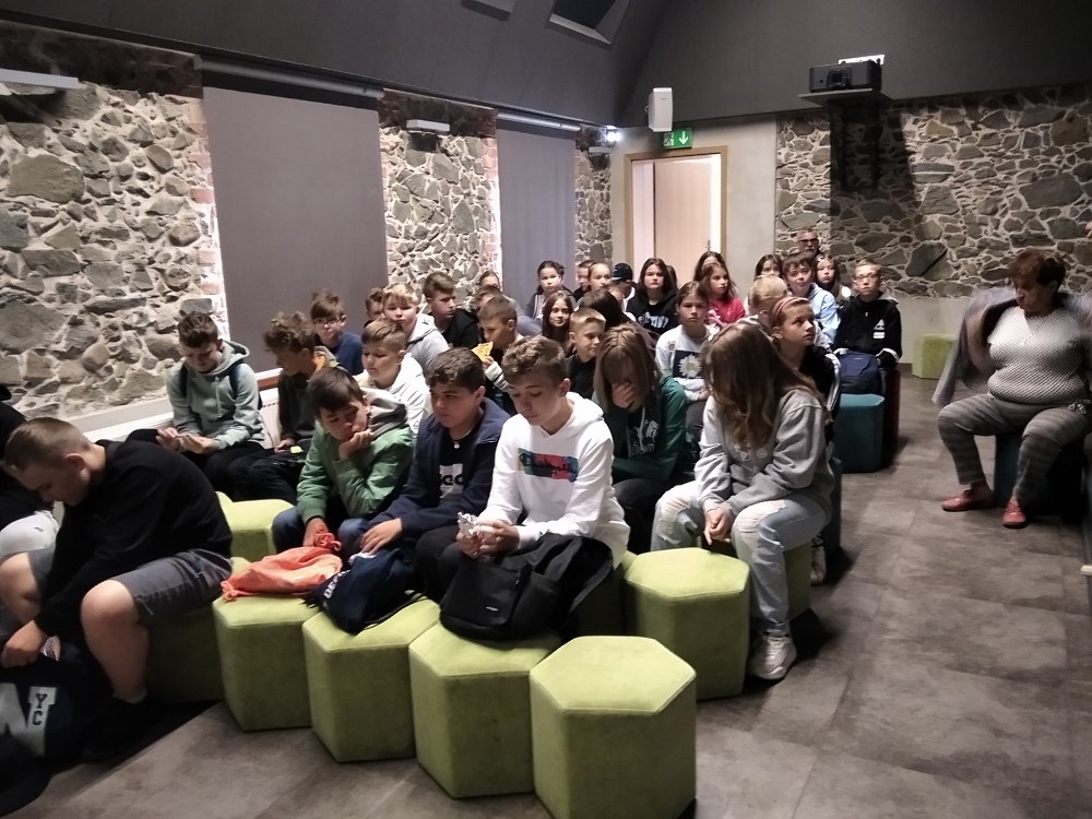 Po krótkim filmie o regionie, typach skał, powstaniu wulkanów uczniowie obejrzeli wystawę minerałów w Sali Ziemi, następnie zapoznali się z interaktywną makietą regionu Gór i Pogórza Kaczawskiego, obejrzeli wnętrza różnych wulkanów. Wśród przygotowanych dla młodzieży atrakcji był „Symulator trzęsienia ziemi", z którego oczywiście wszyscy skorzystali. Uczniowie uczestniczyli w warsztatach laboratoryjnych „Cztery żywioły - ogień“, na których przeprowadzali niesamowite eksperymenty: tworzyli „ogniste węże faraona”, wykonali wybuchową erupcję modelu wulkanu, zobaczyli płonącą dłoń.