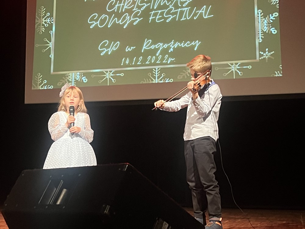 Kolędy i piosenki świąteczne zostały wybrane i przygotowane przez uczniów wraz z nauczycielką Joanną Pietras, która zgłosiła uczniów do konkursu. Oto jego wyniki: