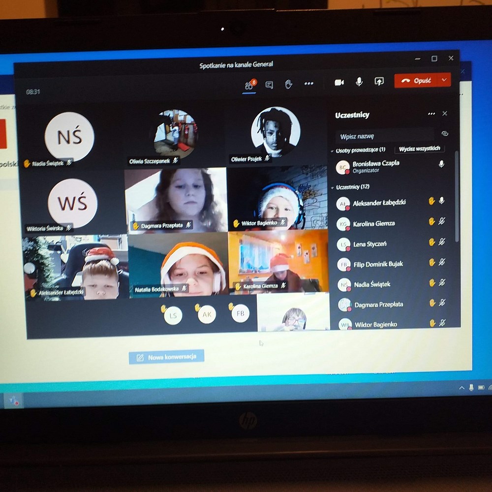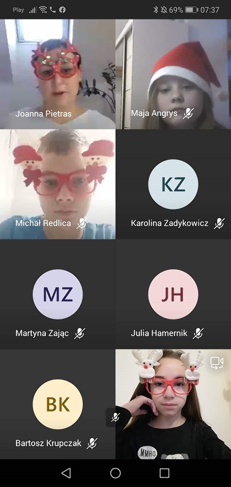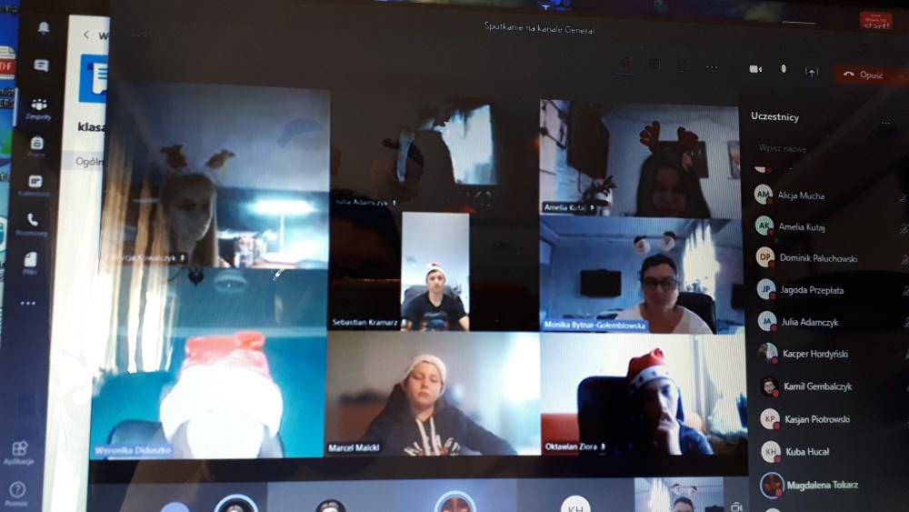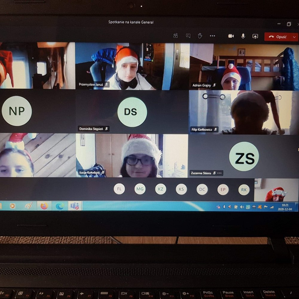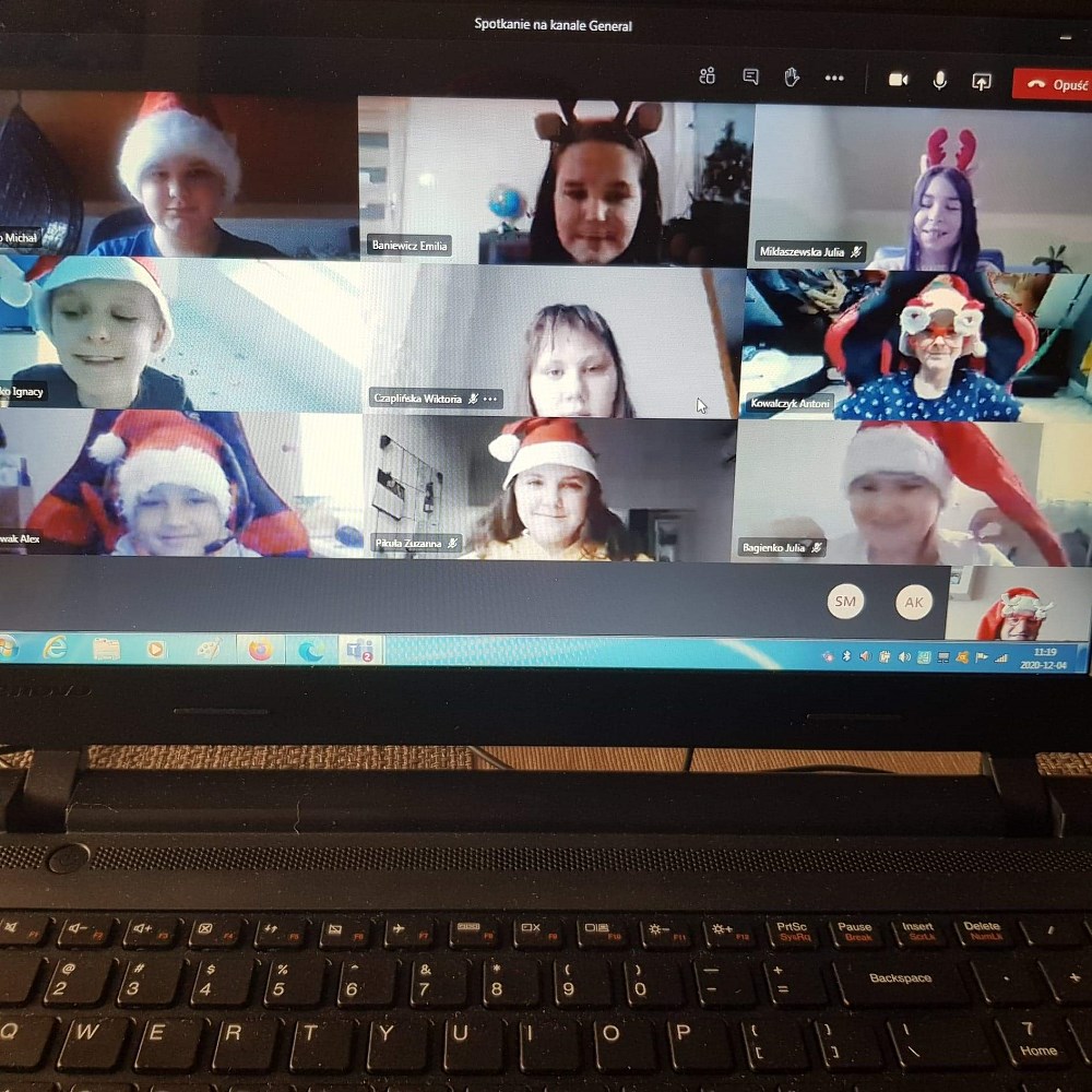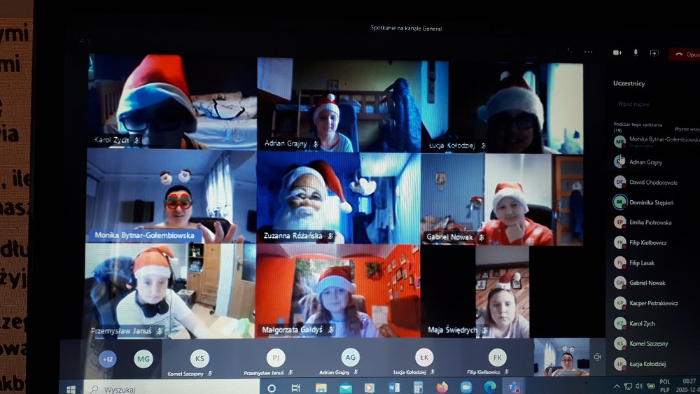 W jaroszowskiej szkole Mikołajki rozpoczęto już w piątek. Uczniowie ubrali czerwono-białe przebrania i od razu na lekcjach, prowadzonych zdalnie, zrobiło się inaczej. Okazał się to bardzo trafiony pomysł na złamanie „zdalnej” rutyny.