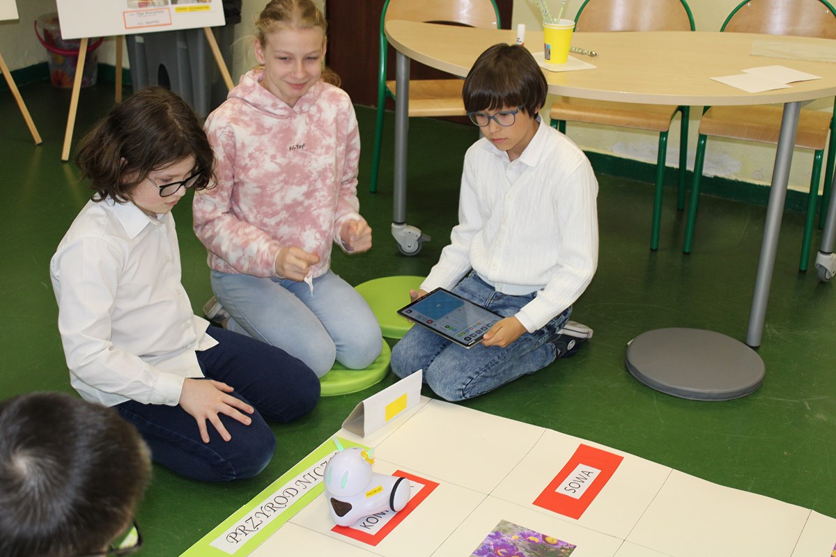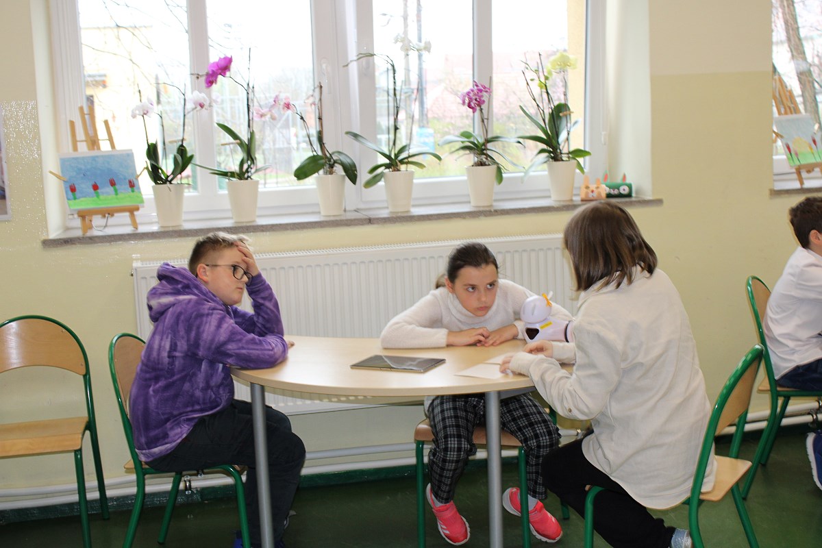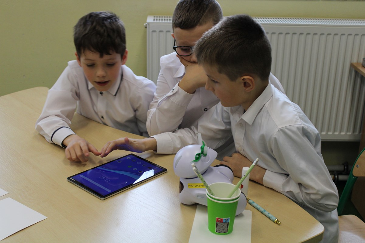 Zadania konkursowe miały bardzo różnorodną formę: quiz, układanka sylabowo- wyrazowa, uzupełnianie schematów, zagadki. Podczas rywalizacji uczniowie musieli się również wykazać umiejętnością programowania Photona.