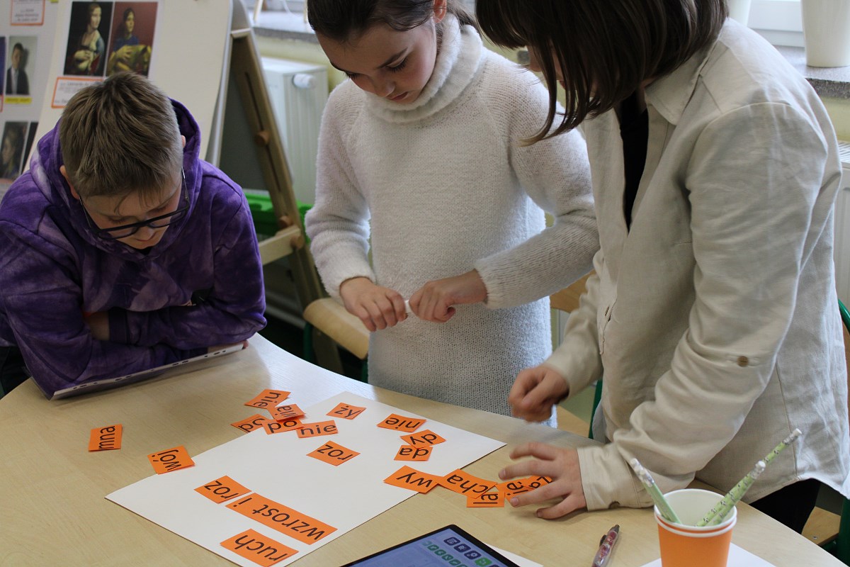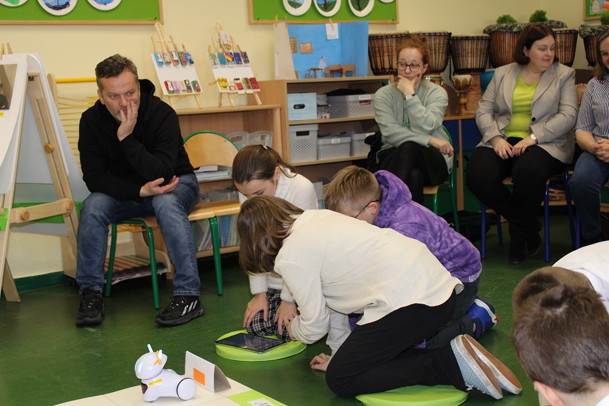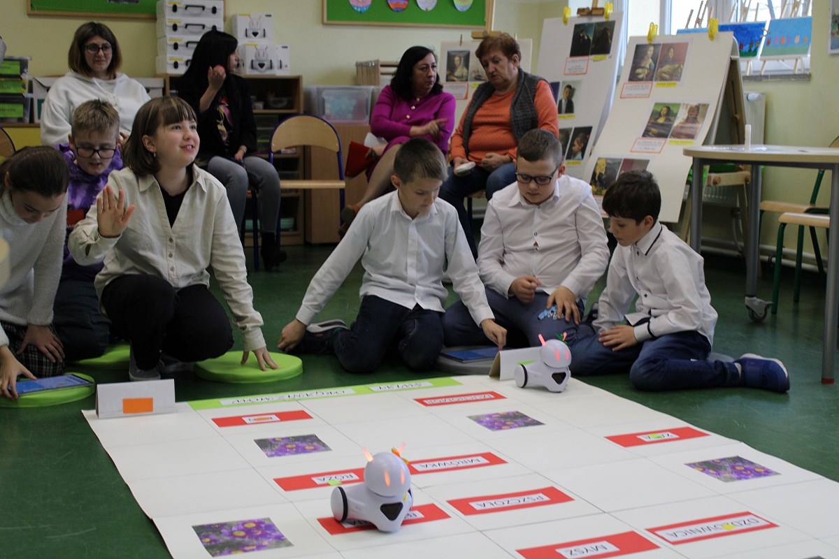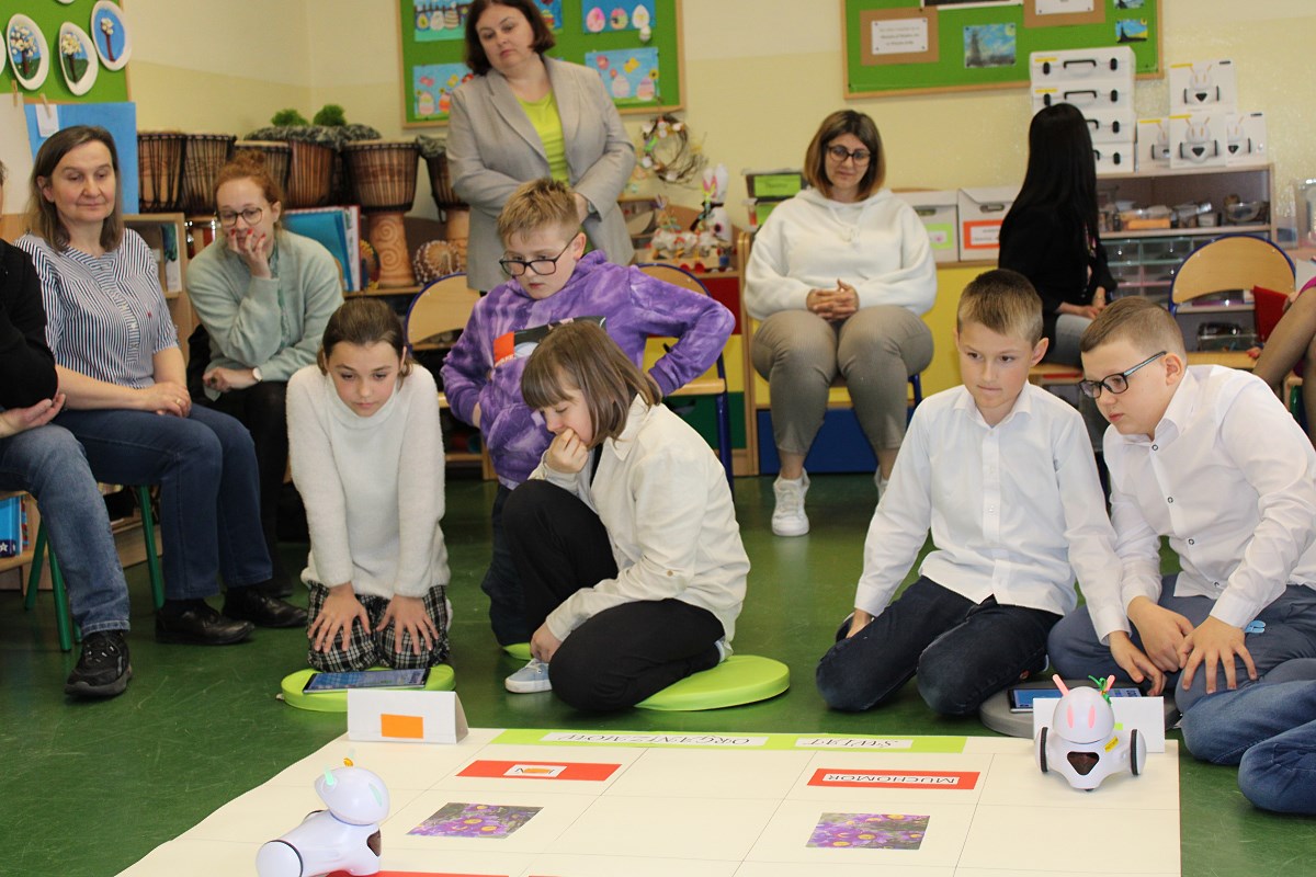 Zadania konkursowe miały bardzo różnorodną formę: quiz, układanka sylabowo- wyrazowa, uzupełnianie schematów, zagadki. Podczas rywalizacji uczniowie musieli się również wykazać umiejętnością programowania Photona.