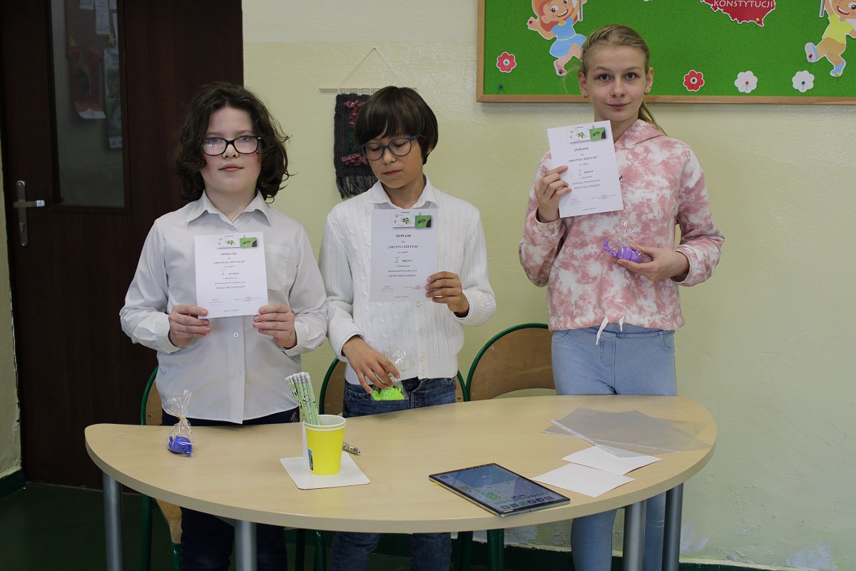Na koniec dyrektor szkoły Beata Jankiewicz wręczyła uczniom dyplomy i skromne upominki. Otwartą lekcję poprowadziła nauczycielka – Dorota Burzyńska.
