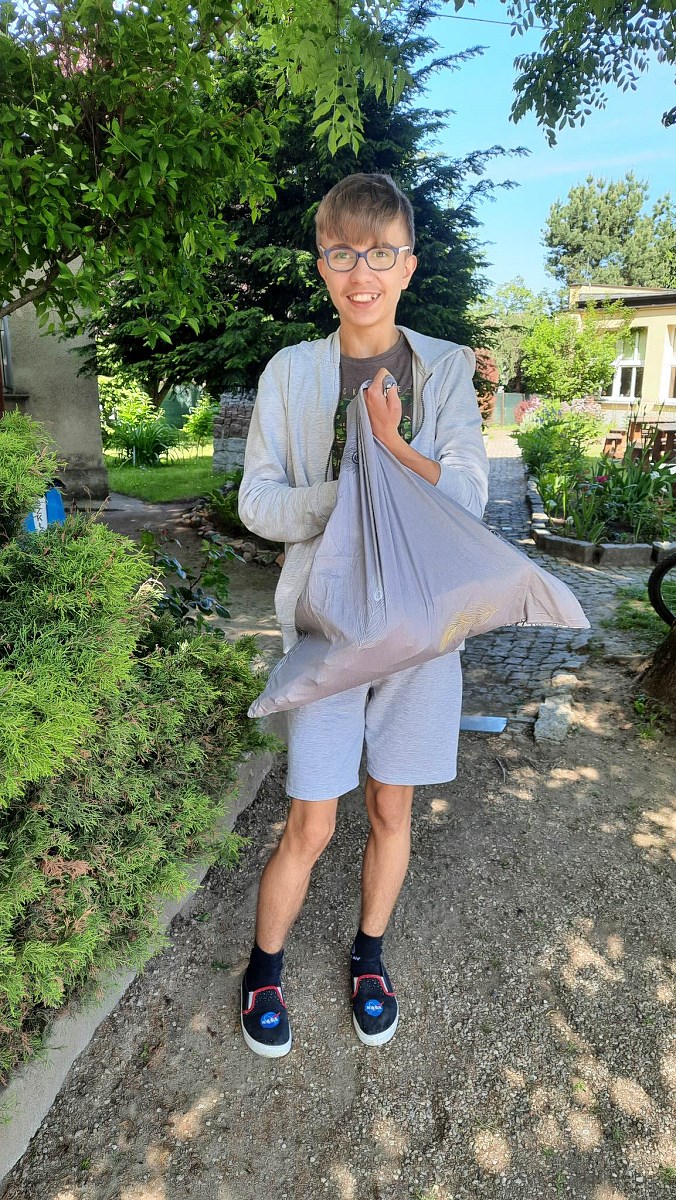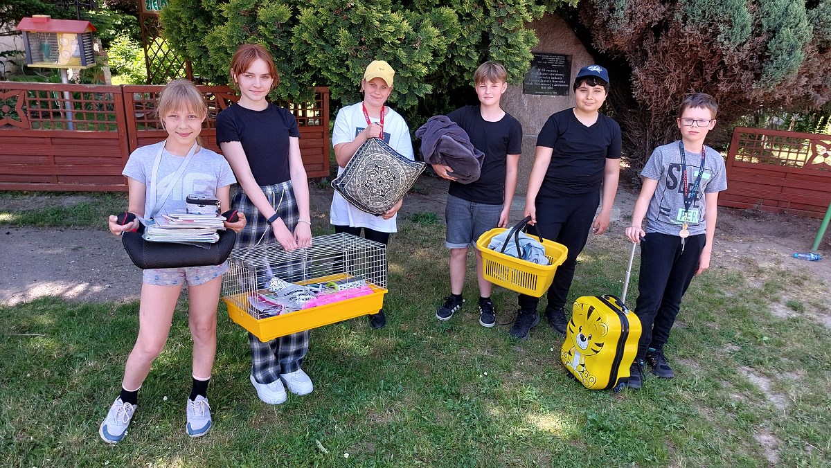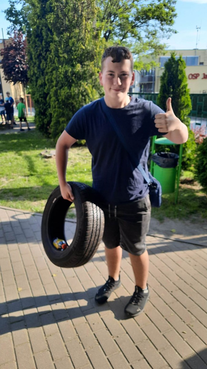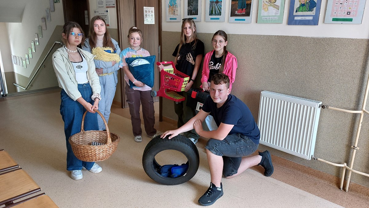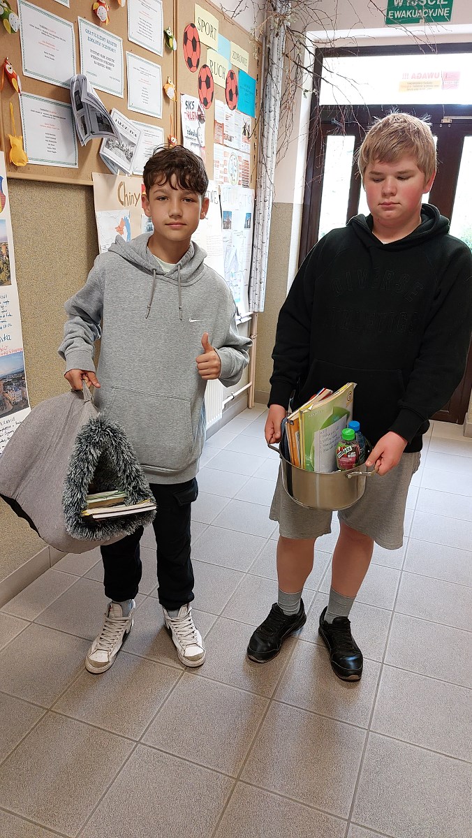 Dobra zabawa, kreatywność, śmiech i podziw innych uczniów – towarzyszyły tego dnia tym, którzy podjęli wyzwanie i spakowali podręczniki, zeszyty i przybory szkolne do klatek dla zwierzątek, lodówek turystycznych, walizek, poszewek na poduszki, koszyków na zakupy, garnków i in. Wszystkich zaskoczył Filip Lasak z klasy 8b, który spakował swoje rzeczy do … opony.