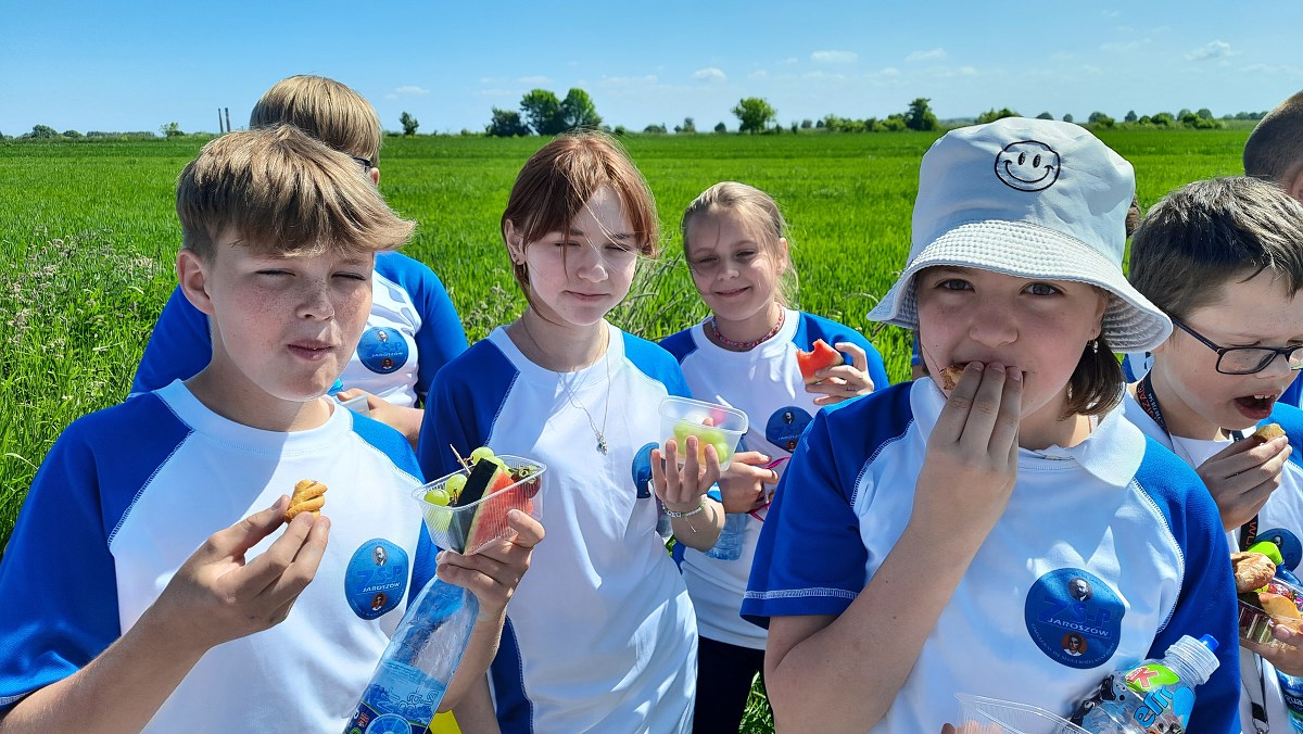Udział wzięli uczniowie z klasy IV i V – przed rozpoczęciem Marszobiegu dzieci poprowadziły taneczną część rozgrzewki. Była aktywność, integracja z Seniorami oraz pyszny poczęstunek.