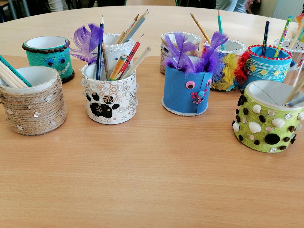 Tak więc do tworzenia „czegoś” wykorzystywano stary sprzęt kuchenny, odzież, odpady papierowe w postaci różnorodnych rolek, butelki z tworzywa sztucznego, resztki paneli podłogowych i wiele innych.
