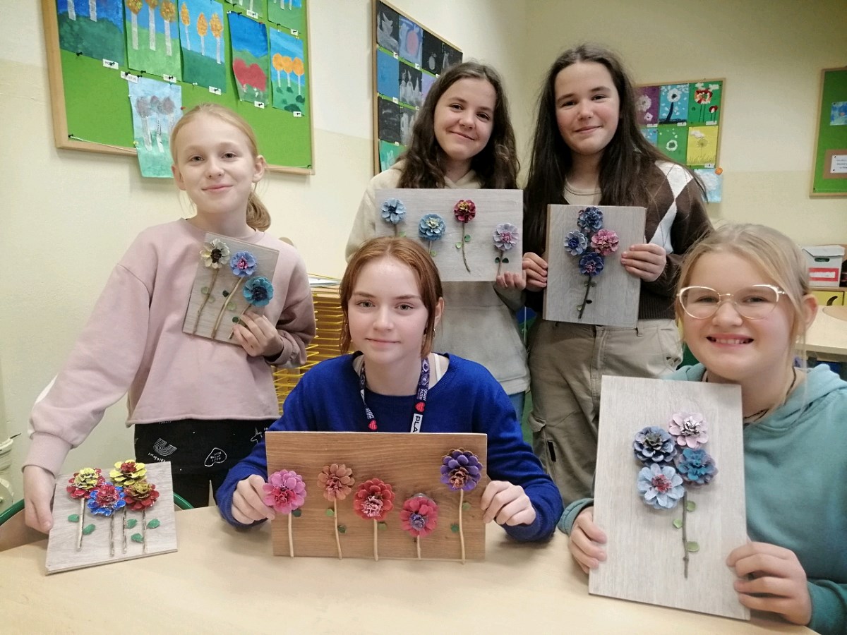W wyniku działań uczniowskich powstały pojemniki na kwiatki, podstawki pod telefon komórkowy, stojak na biżuterię, zabawki dla psa lub kota, pojemniki na długopisy, obrazki z motywem kwiatowym, a także gry integrujące zespół klasowy.