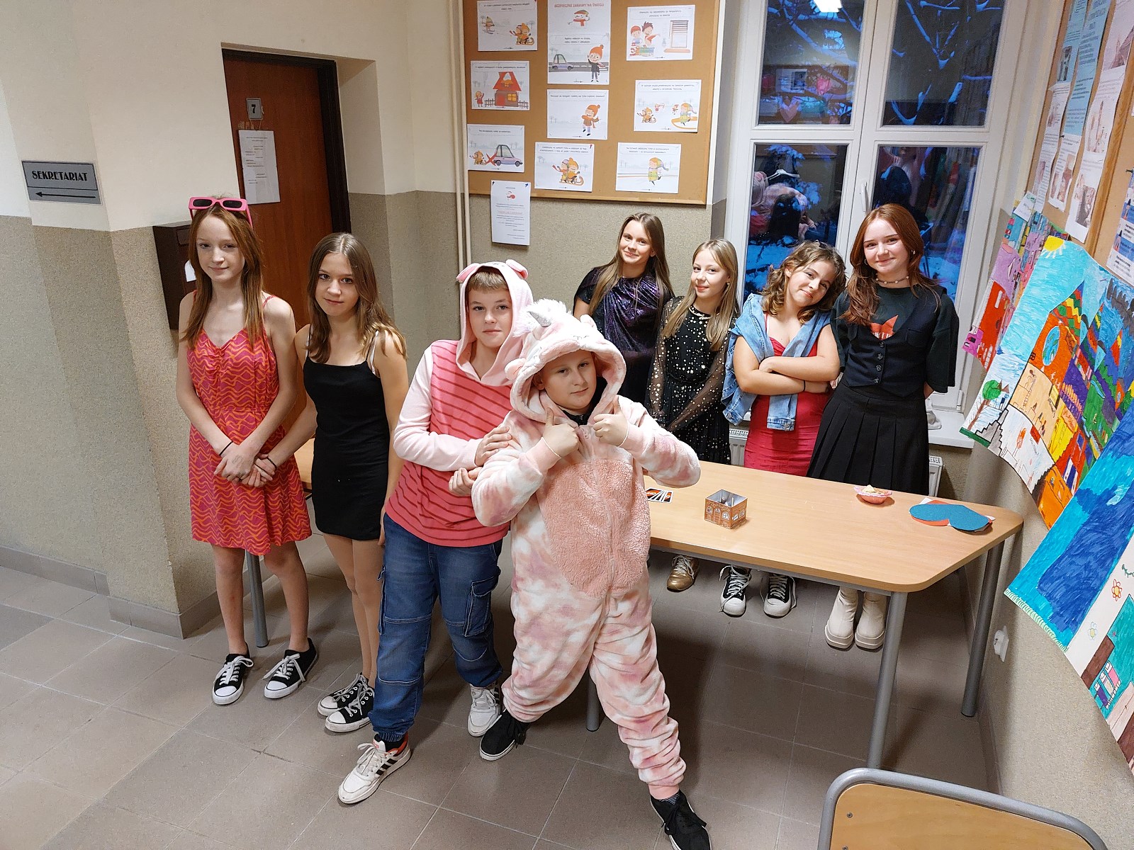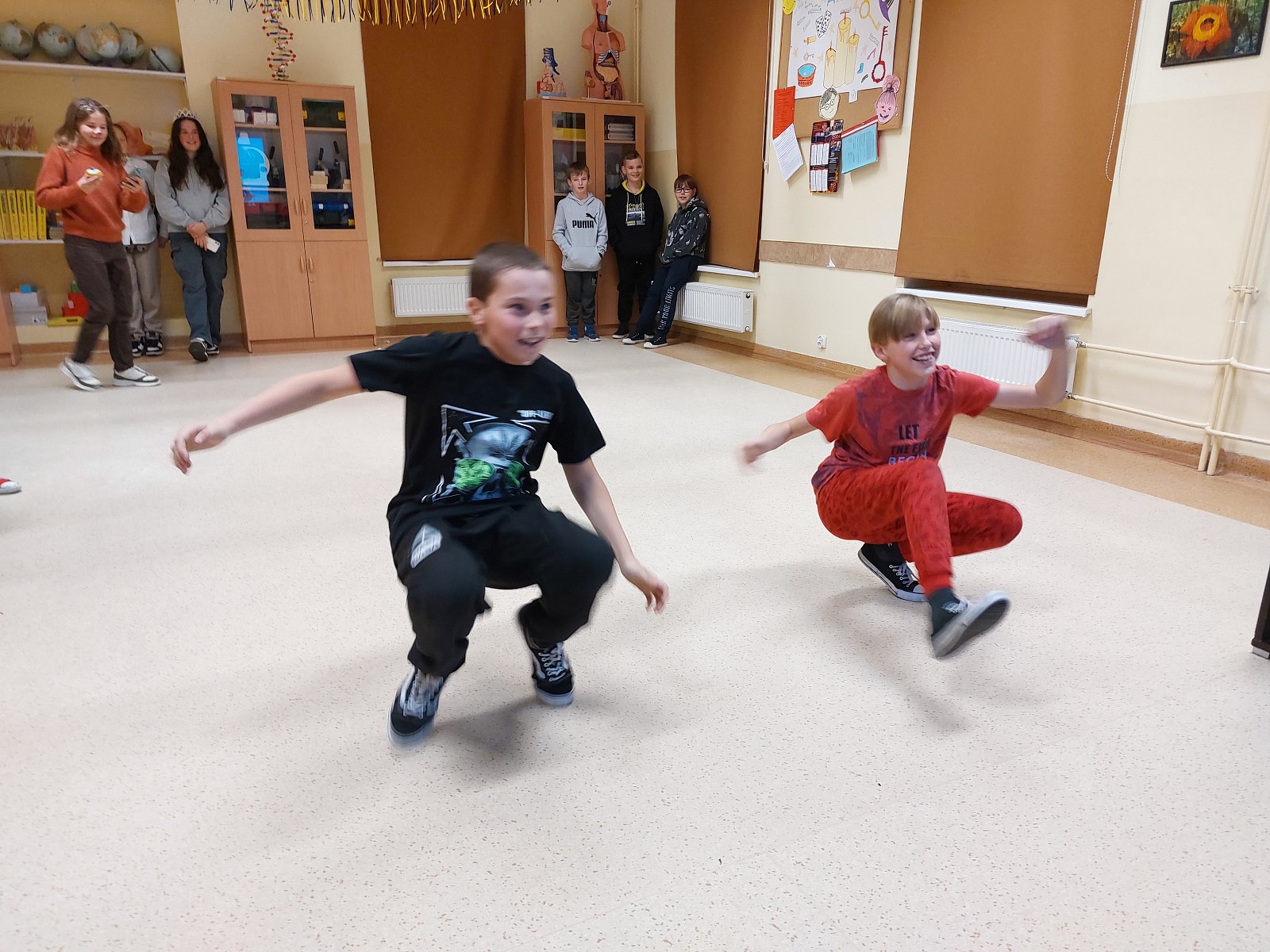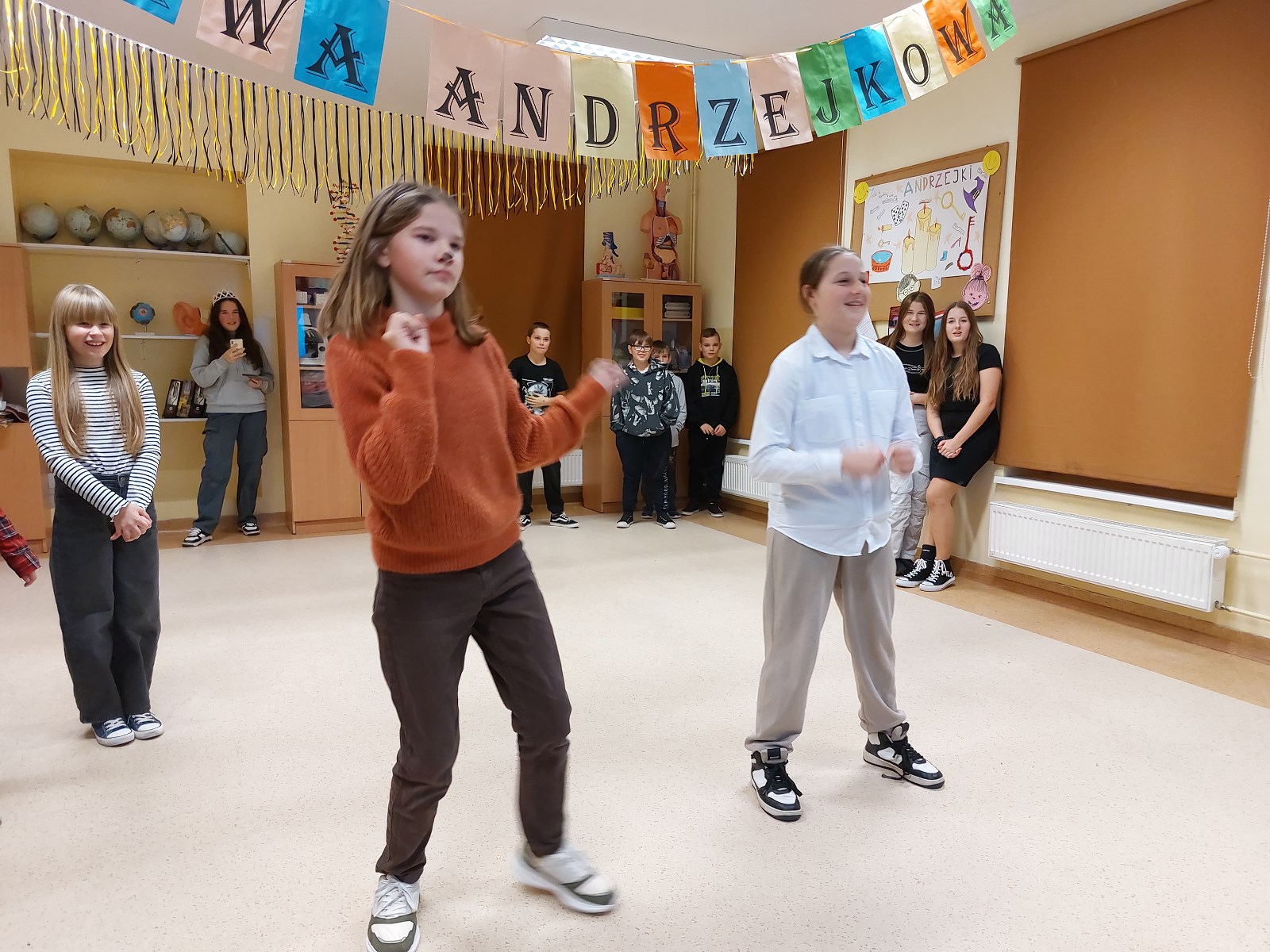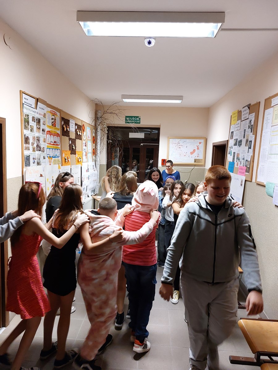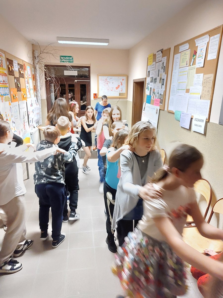 Dwie godziny doskonałej zabawy, kolorowe przebrania niektórych uczniów i bardzo radosne nastroje towarzyszyły młodzieży z klas 4-8. Ta pozytywna energia udzieliła się także Wychowawczyniom oraz Dyrekcji, które podziwiały kreatywność taneczną wspaniale bawiących się uczniów.