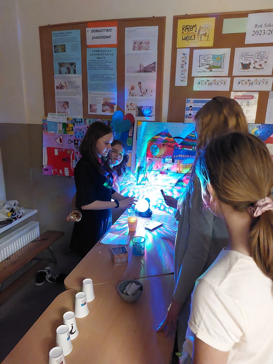 Popołudniowa dyskoteka prowadzona przez DJ-ów – Antka Kowalczyka i Olka Łabędzkiego – była okazją do zabawy i odskocznią od codziennych obowiązków szkolnych. Wróżki – Ola Hućko i Zuzia Gesing – Miśkiewicz zadbały o przepowiadanie przyszłości wszystkim chętnym, a pani Dorota Burzyńska (opiekun SU) prowadziła „Słodki bufet”, do którego pyszności podarowali uczniowie: Wowa Dejnega (kl. 5a), Ania Szczepek (kl. 5a), Bartosz Dygudaj (kl. 4a), Blanka Struszka (kl. 4a) i Sebastian Dąbrowa (kl.4a).