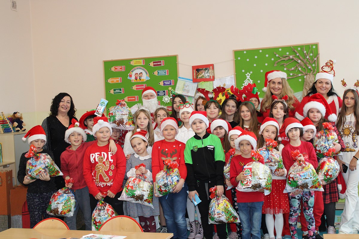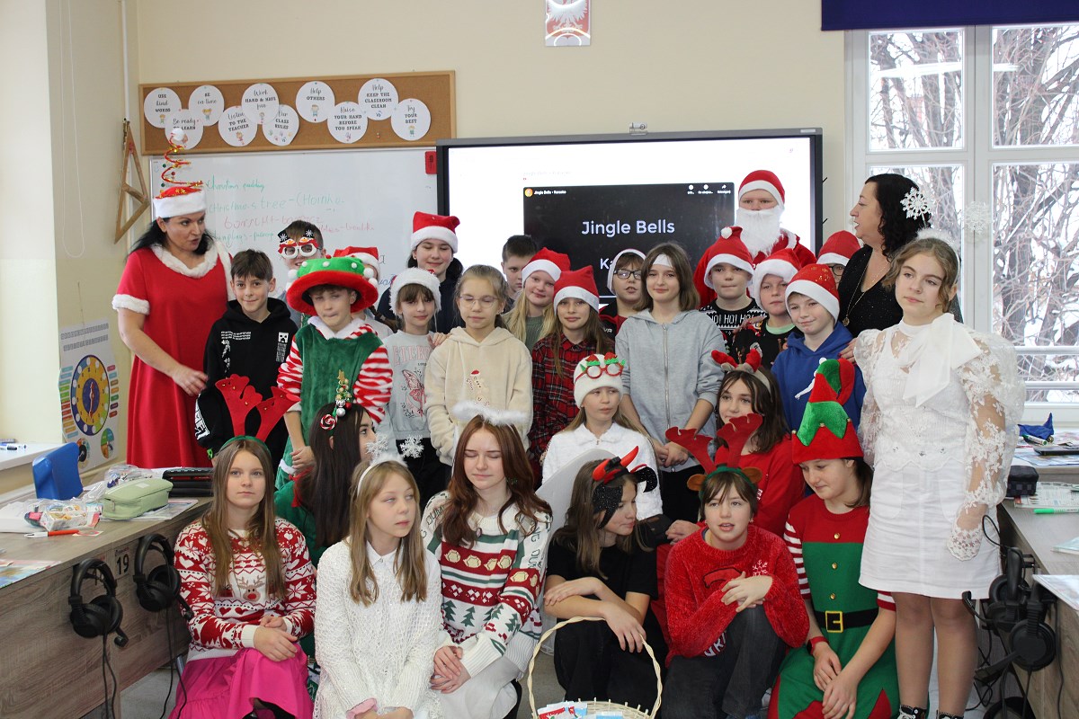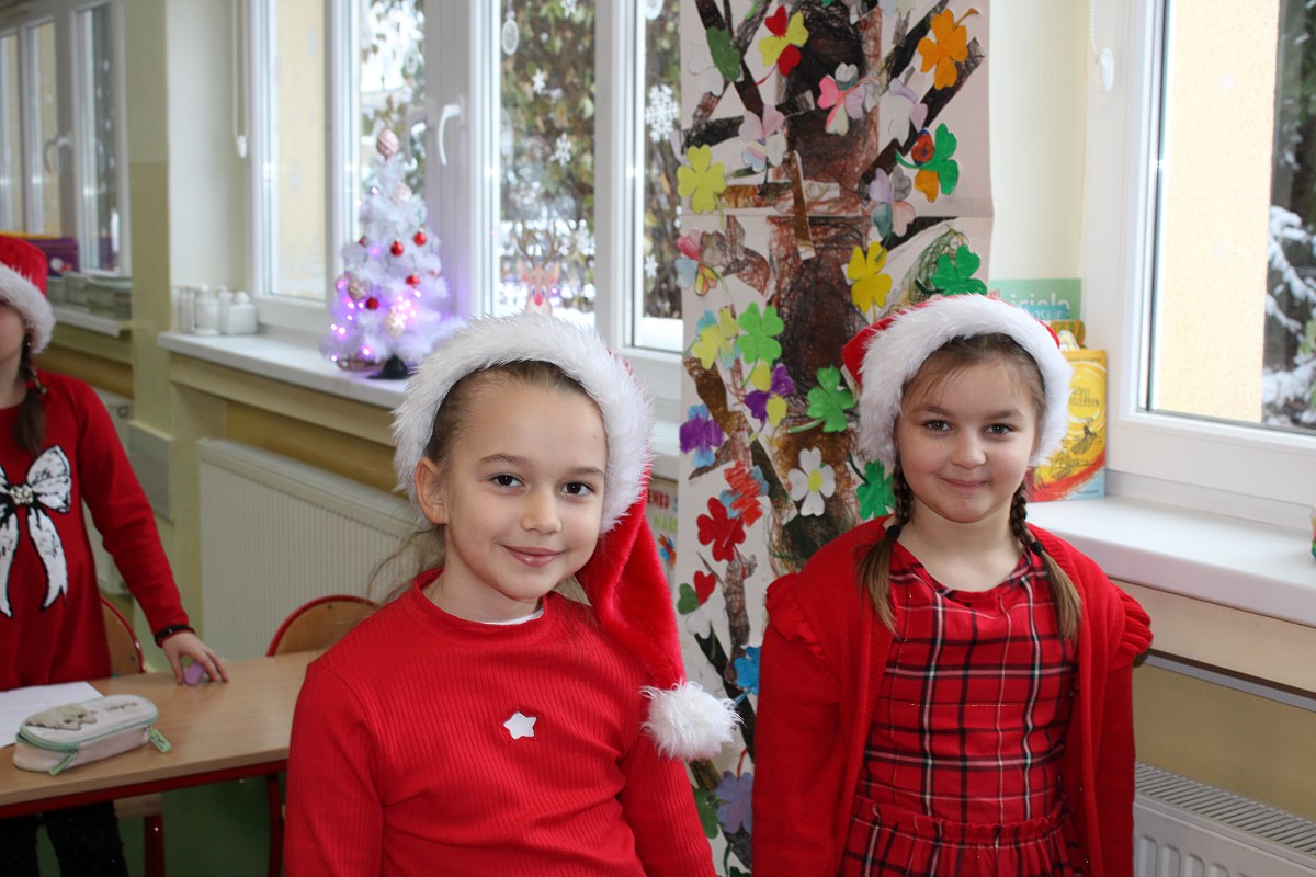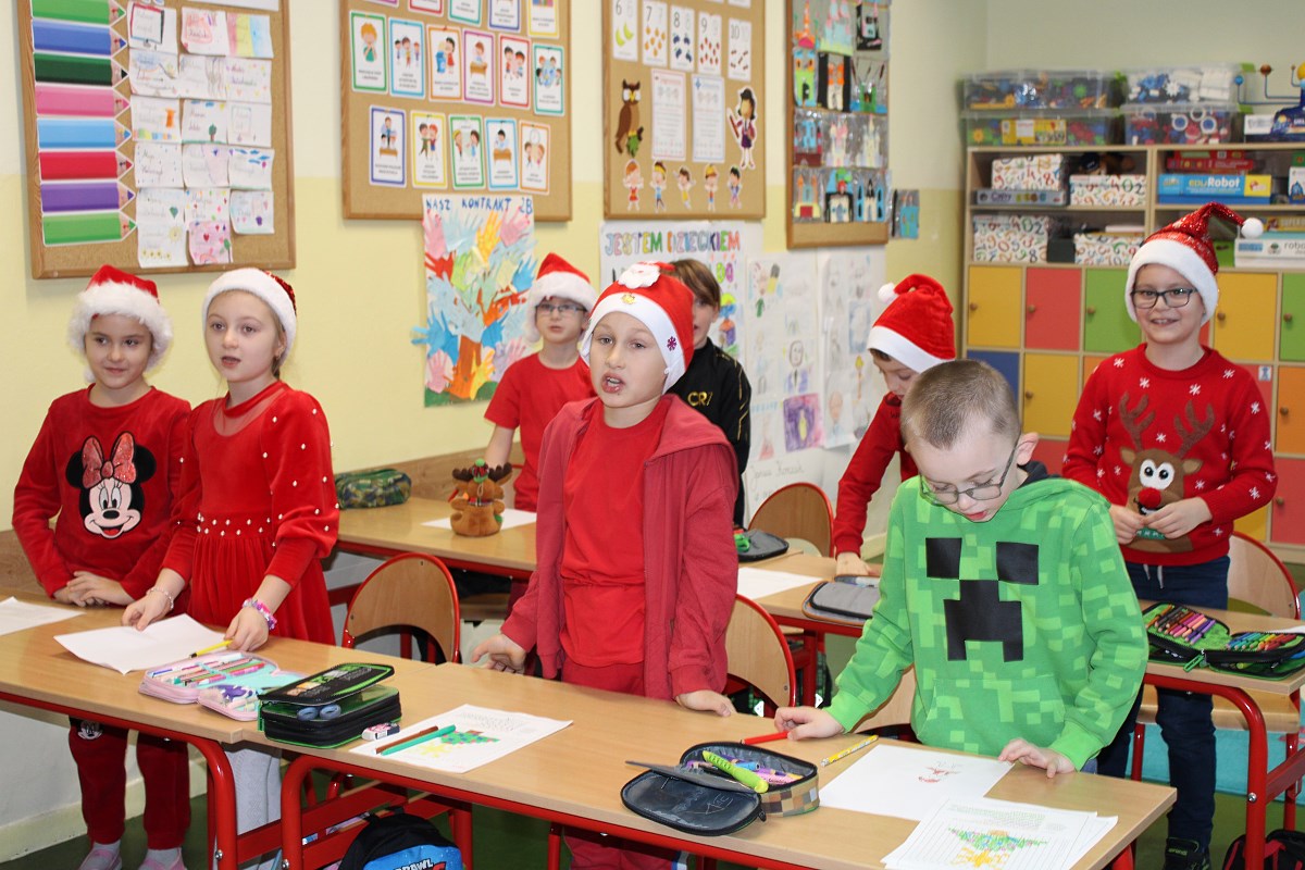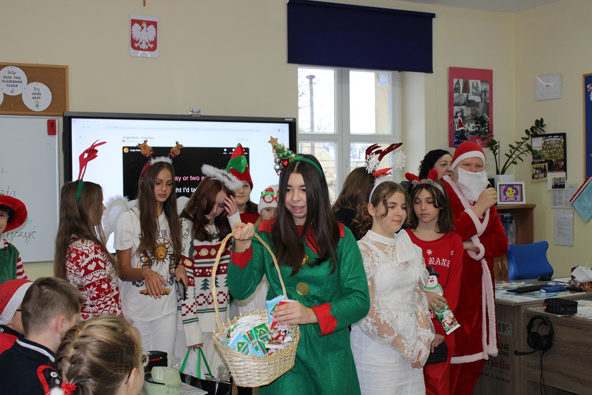 Orszak odwiedził uczniów z klas 4 – 8 rozdając im prezenty i czekolady. Było wesoło, radośnie i głośno, bo grała świąteczna muzyka.