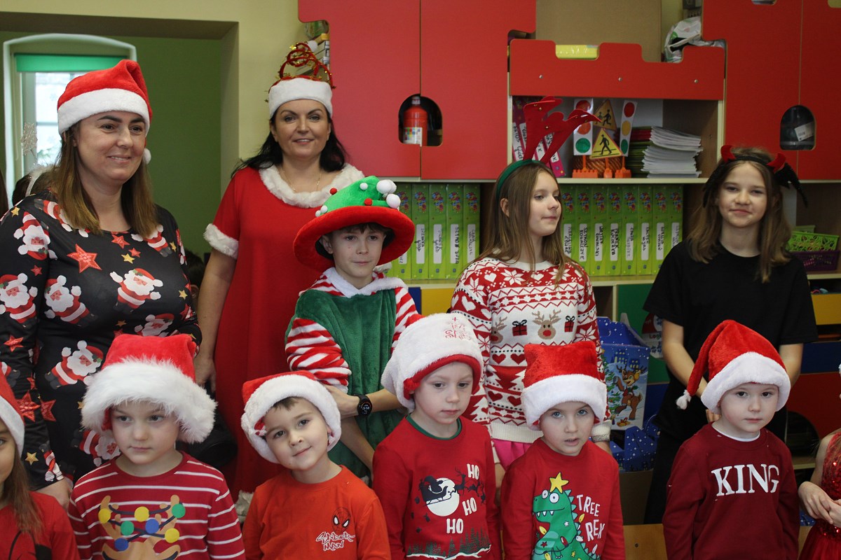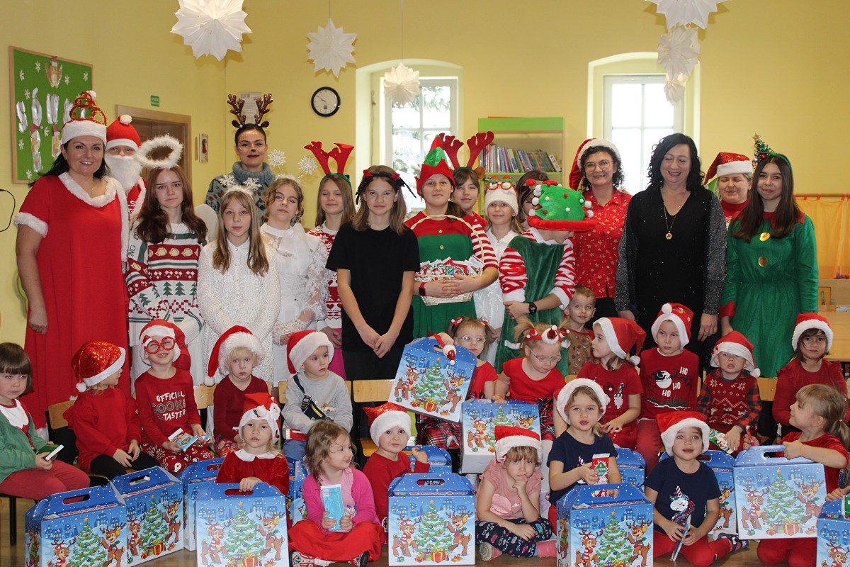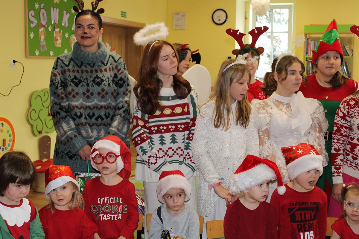 Po zakończeniu wizyt w budynku szkoły, barwny orszak przemaszerował do przedszkola, gdzie dzieciaki były bardzo zaskoczone niecodziennymi gośćmi. Były piosenki, życzenia i wierszyki dla Mikołaja oraz oczywiście prezenty i wspólna zabawa.