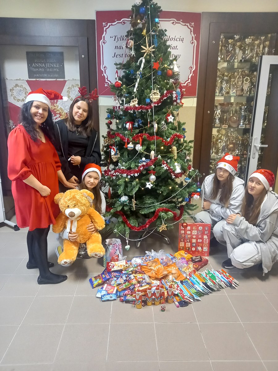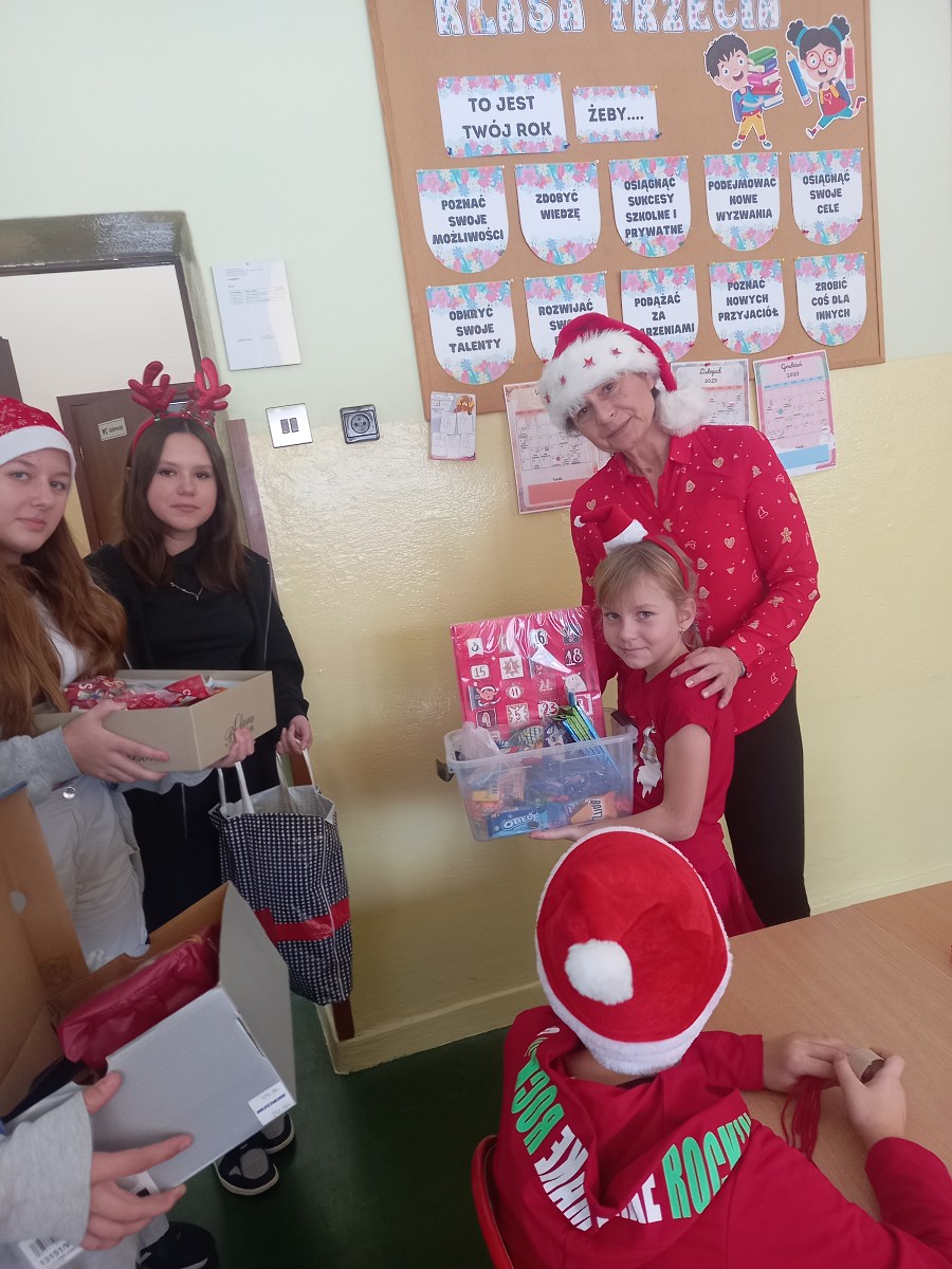 Uczniowie, obdarowani hojnie przez Mikołaja, podzielili się słodyczami ze swoich świątecznych paczek. Tym razem słodkości były zbierane dla wychowanków z Domu Pomocy Społecznej w Ścinawce. Do akcji przyłączyła się także dyrektor szkoły Beata Jankiewicz i nauczyciele.