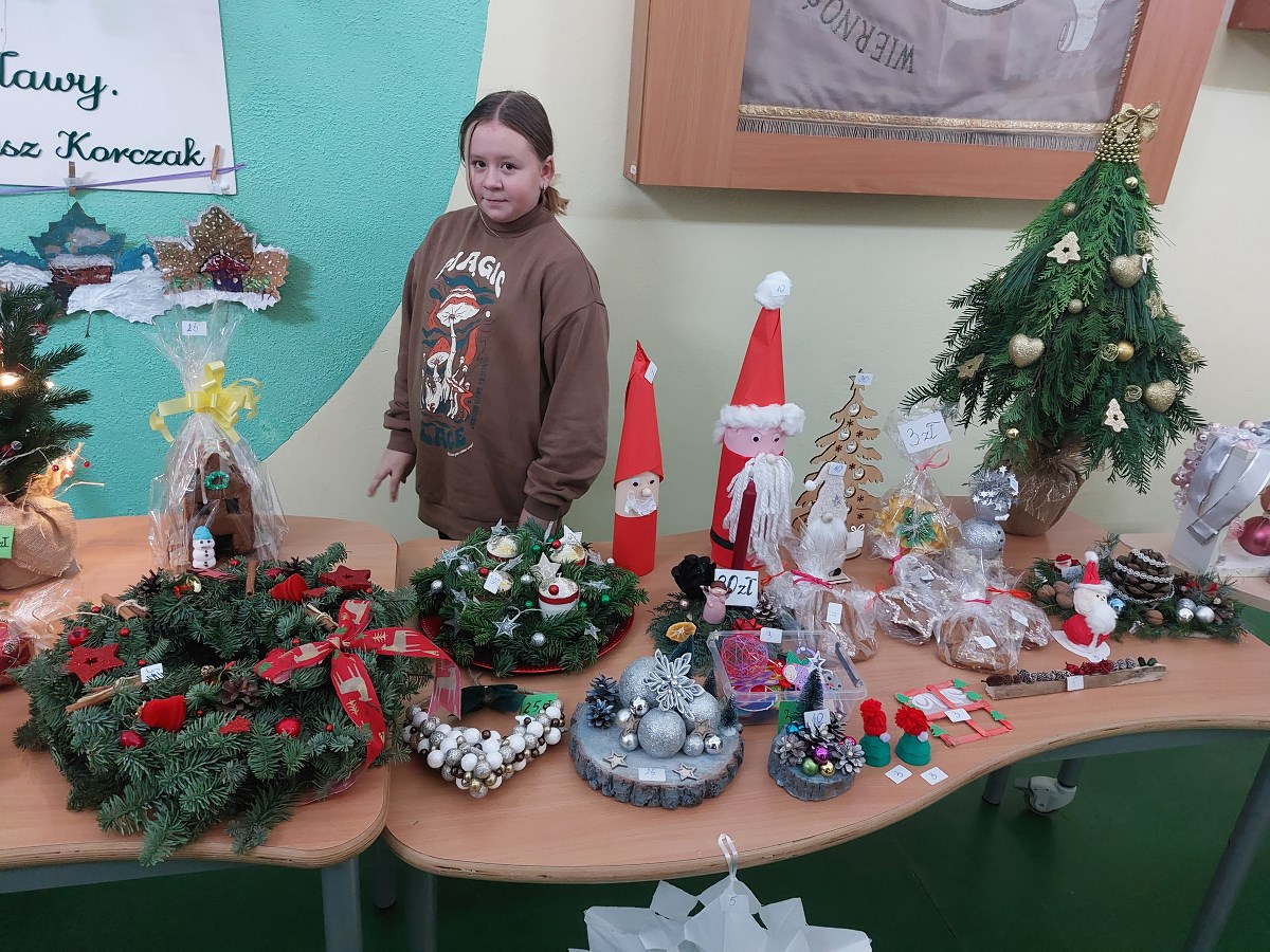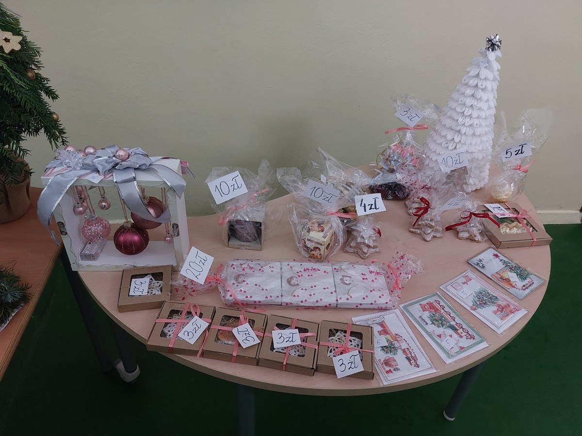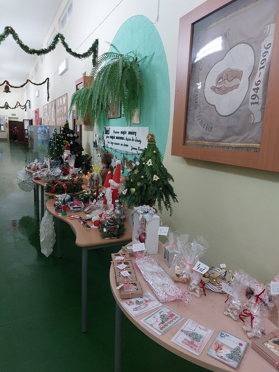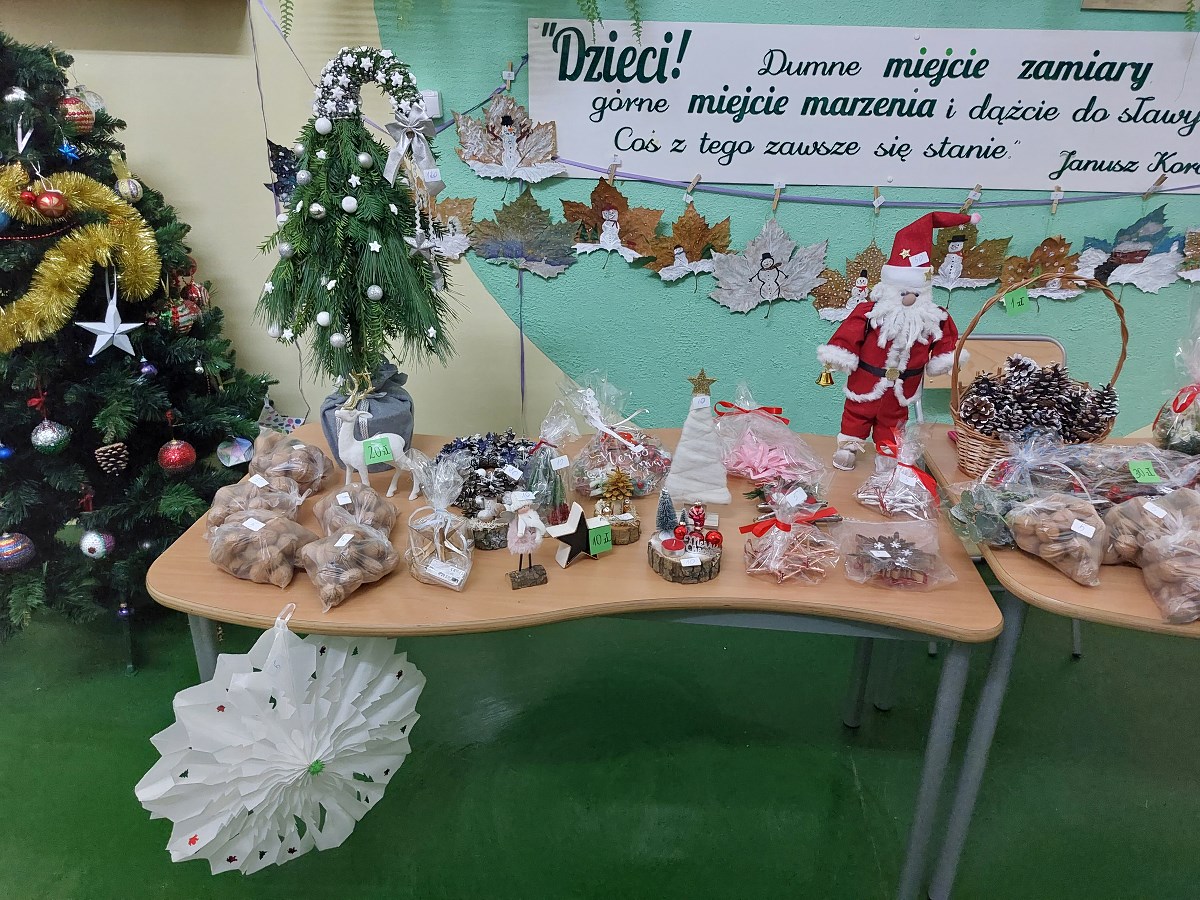 Każde gusta zostały zaspokojone, każdy znalazł coś dla siebie, bo naprawdę było w czym wybierać. Dzięki wielkiemu zaangażowaniu wielu osób – nauczycieli, uczniów i rodziców – Kiermasz Bożonarodzeniowy okazał się wielkim sukcesem. Członkowie Samorządu Uczniowskiego przeliczyli pieniądze z puszek i okazało się, że zebrano 2 470 zł, które zostały przekazane Radzie Rodziców w celu zakupu siedzisk w szkolnym „Happy Clubie” do wypoczynku dla uczniów na przerwach w tzw. „Strefie relaksu”.