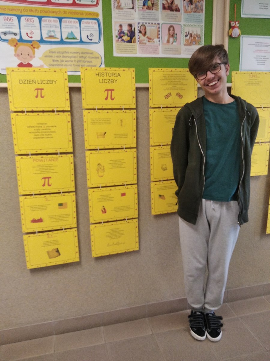 Wszyscy uczniowie mogli wysłuchać piosenek związanych z liczbą π (np. ułatwiających zapamiętanie 100 pierwszych cyfr tej liczby) oraz sprawdzić swoją wiedzę na temat Ludolfiny rozwiązując quizy. Efekty pracy wszystkich uczniów można było podziwiać na gazetkach w klasie oraz w korytarzu szkolnym. Organizatorką tego przedsięwzięcia była nauczycielka matematyki - Sylwia Wilczak.
