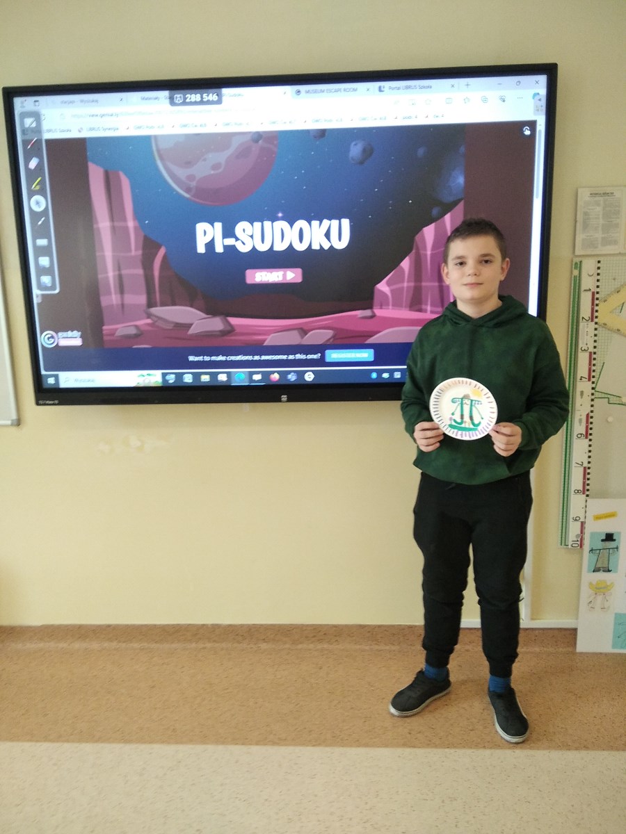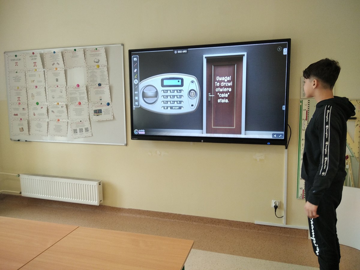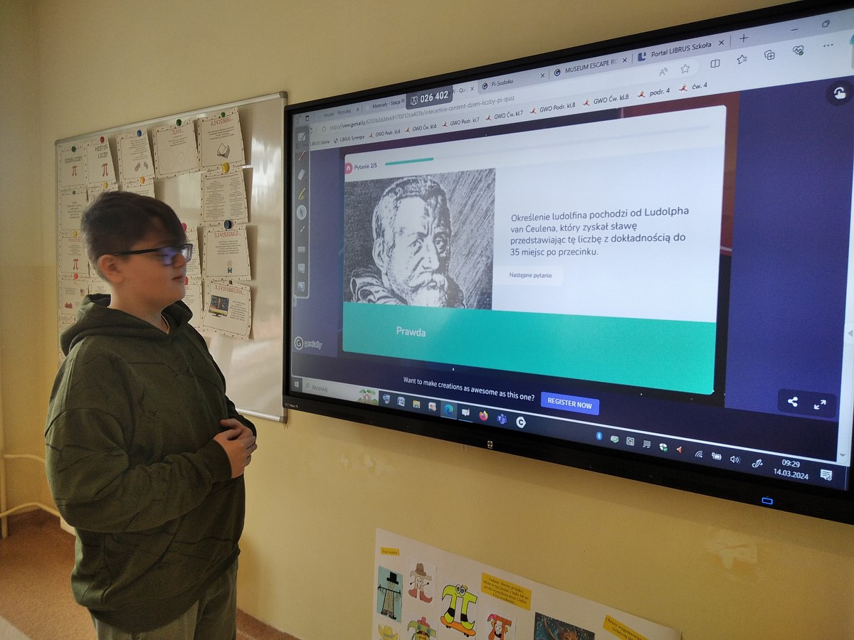 Starsi uczniowie korzystali z wirtualnego pokoju zagadek czyli „Escape room”, rozwiązując zagadki oraz ciekawostki związane z liczbą π.