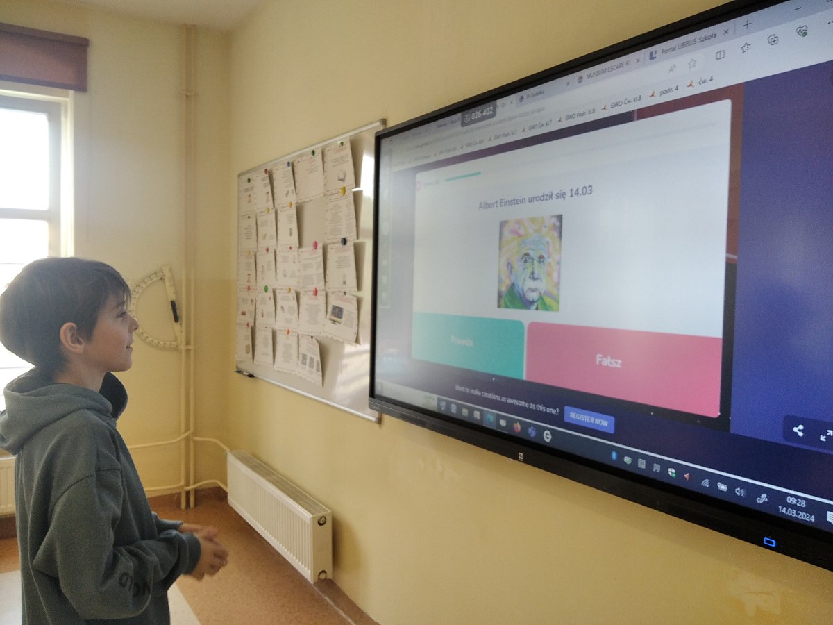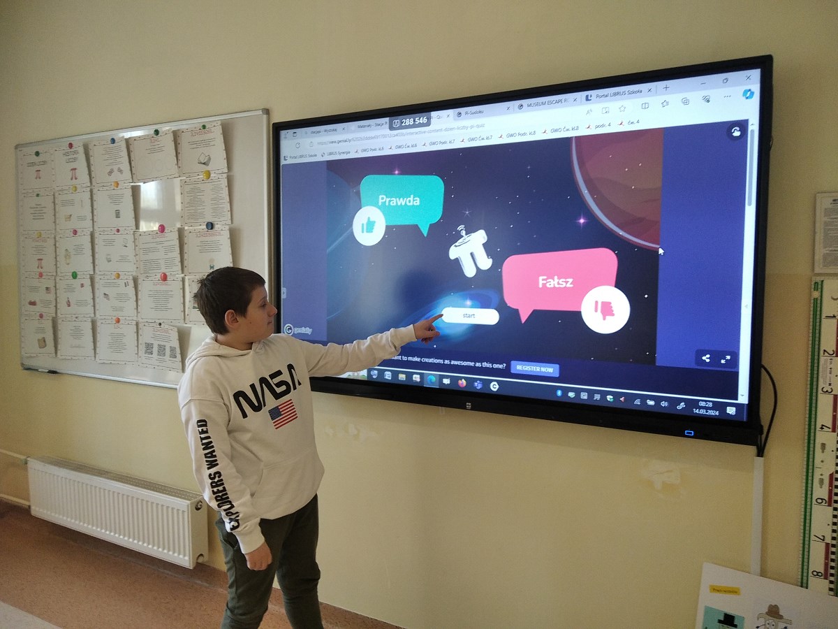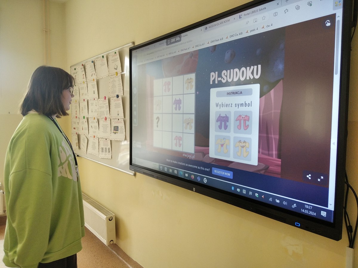 Starsi uczniowie korzystali z wirtualnego pokoju zagadek czyli „Escape room”, rozwiązując zagadki oraz ciekawostki związane z liczbą π.