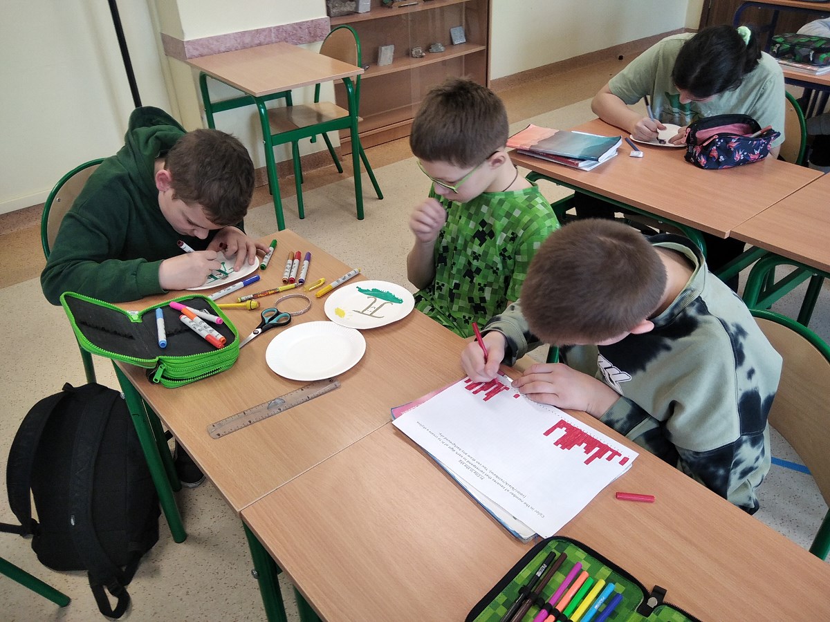Uczniowie tworzyli także „π-ludki” czyli wymyślone przez siebie postaci bajkowe zawierające symbol stałej matematycznej. To samo zadanie wykonane zostało za pomocą sztucznej inteligencji (AI), a na koniec porównane zostały efekty pracy uczniów.