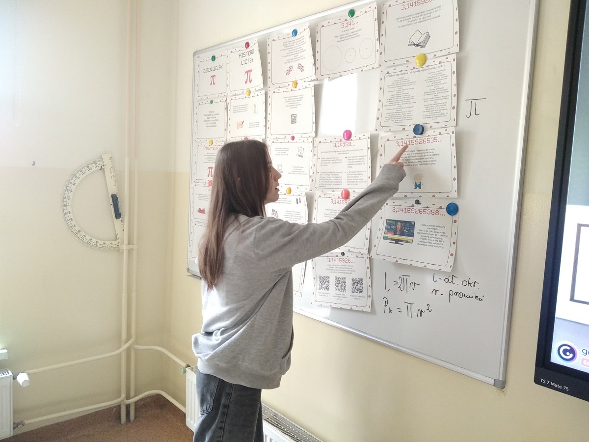Podczas zajęć lekcyjnych uczniowie młodszych klas samodzielnie odkrywali i wyznaczali liczbę π mierząc okrągłe przedmioty i dzieląc ich obwód przez średnicę. Inni tworzyli panoramę „Miasta Pi na niebie” kolorując liczbę kwadratów odpowiadającą kolejnej cyfrze liczby π oraz rozwiązywali „Pi-SUDOKU”.