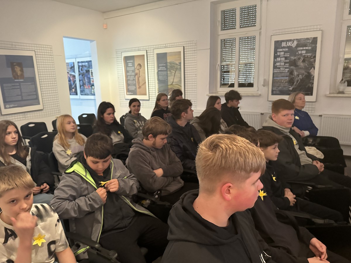 Wydarzenie odbyło się przy udziale: pani Sabiny Chrapek – prezes Towarzystwa Społeczno-Kulturalnego Żydów w Polsce / oddz. Wałbrzych. Uczniowie obejrzeli film i zwiedzili wystawę „Zaginione człowieczeństwo”, szukając odpowiedzi na pytania: Czym było getto? W jakich okolicznościach wybuchło powstanie w getcie warszawskim? O co walczyli Żydzi? Następnie przemierzyli teren Miejsca Pamięci zapoznając się z historią KL Gross-Rosen.
