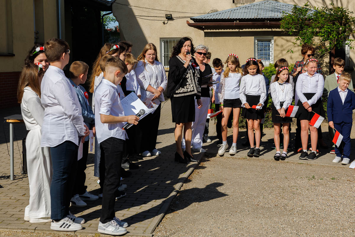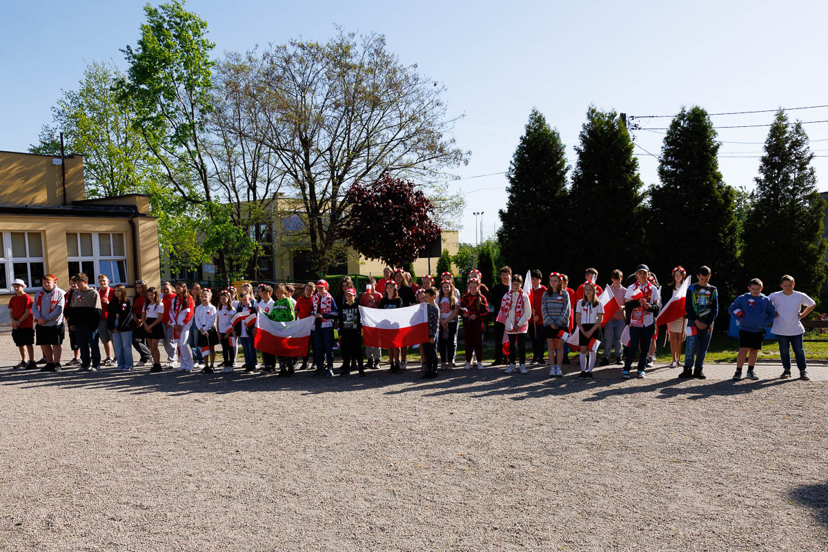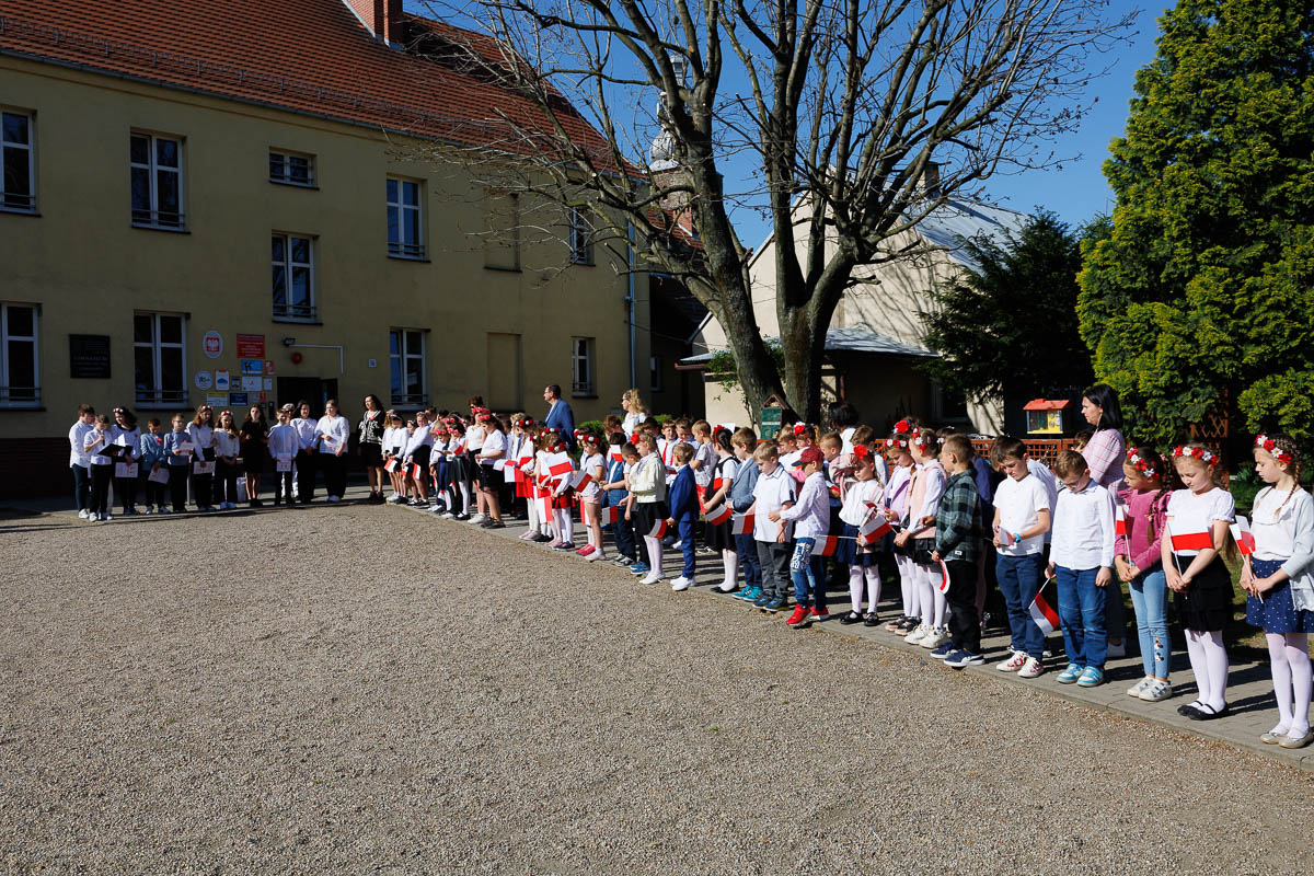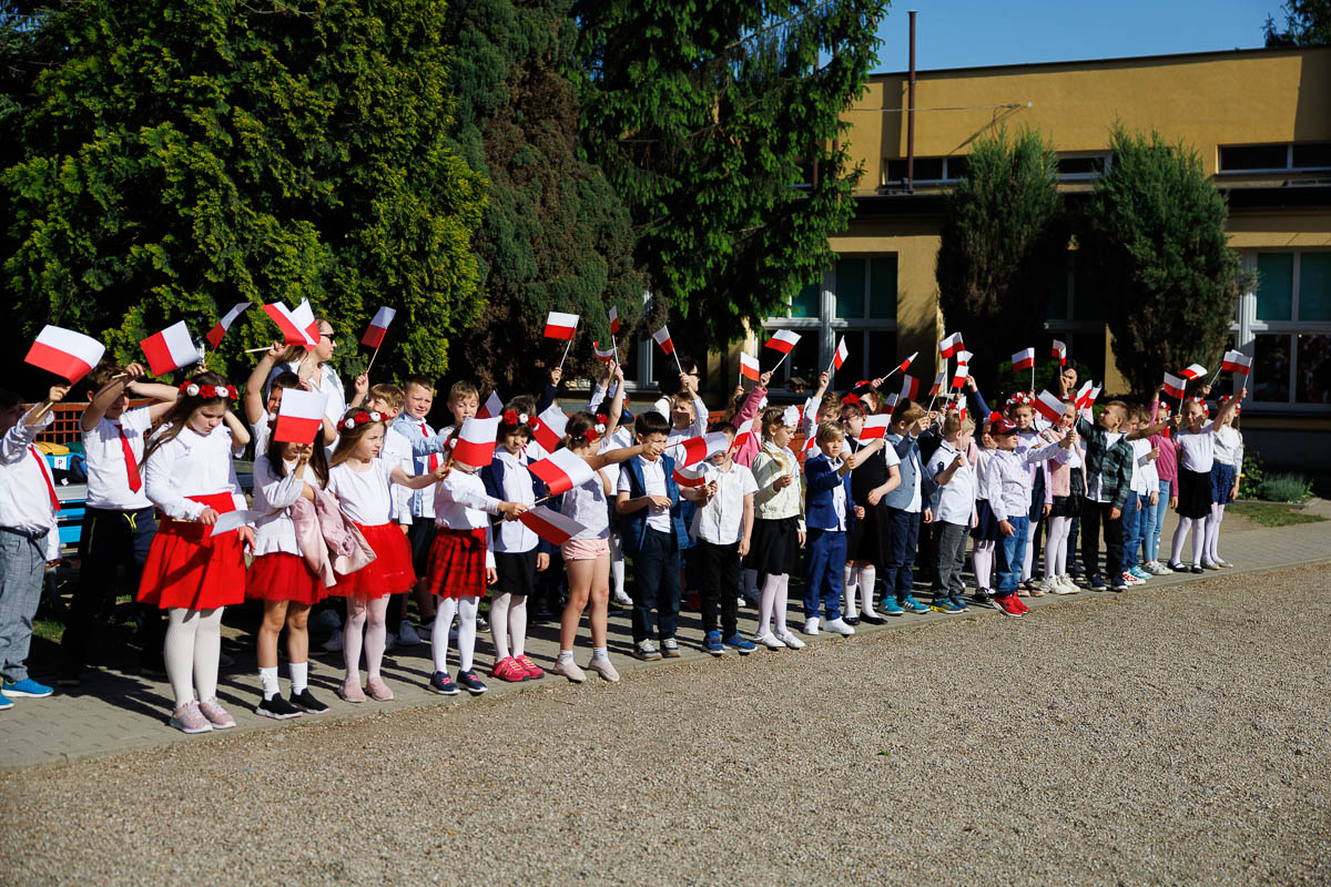 Uczniowie klasy 4 i 7, którzy przygotowali krótki apel, przedstawili krótki rys historyczny każdego święta. Przypomnieli, że 1 maja 2004 roku Polska stała się oficjalnym i równoprawnym członkiem Unii Europejskiej. Dzisiaj daje nam to poczucie bezpieczeństwa i wspólnej walki o prawa człowieka.