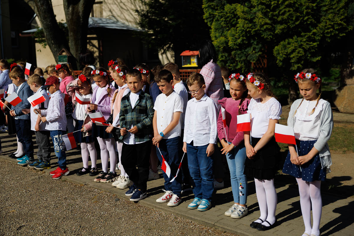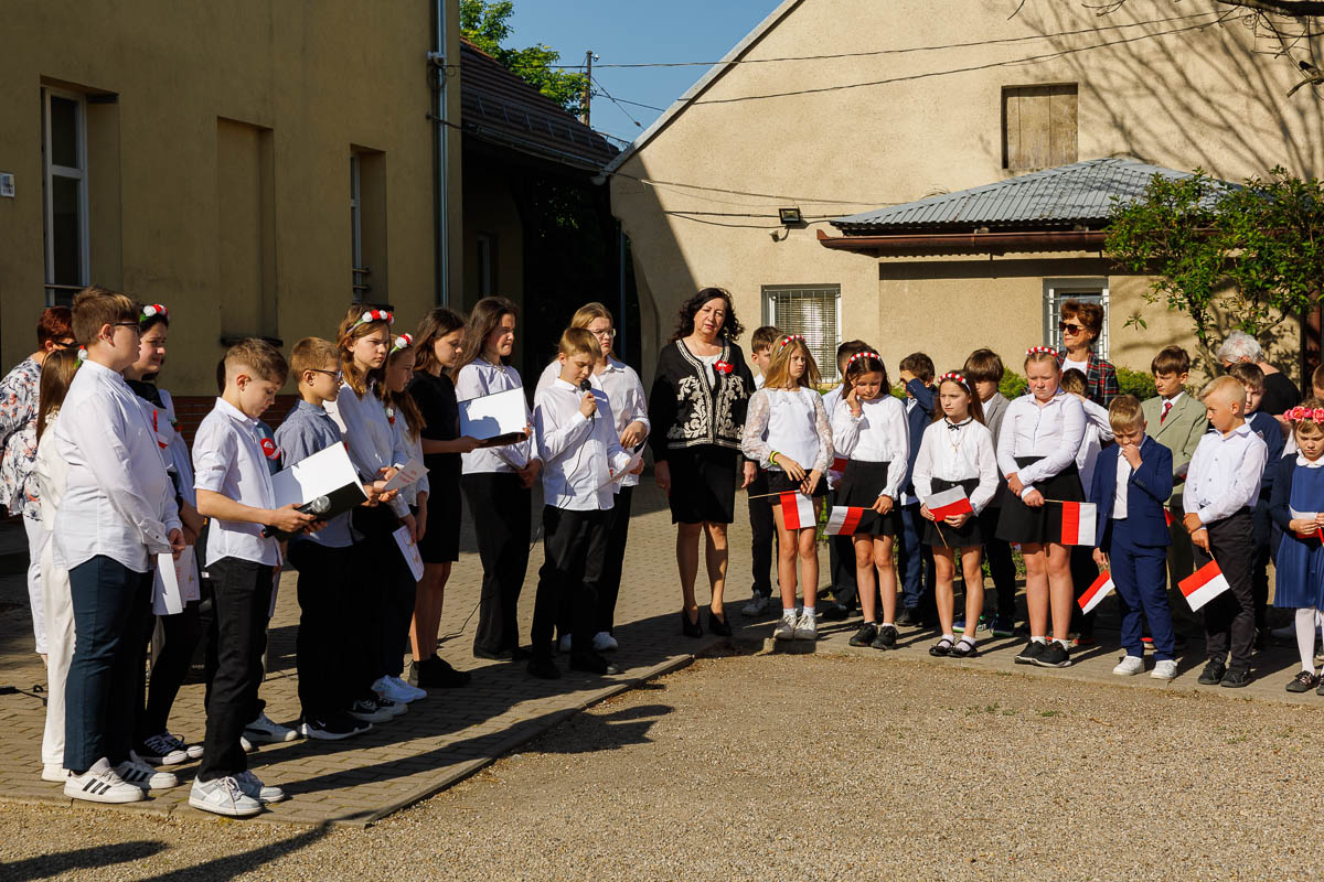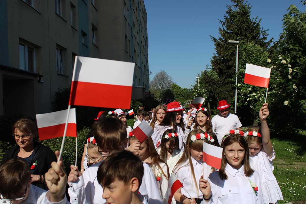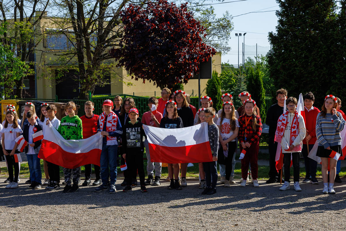 Uczniowie klasy 4 i 7, którzy przygotowali krótki apel, przedstawili krótki rys historyczny każdego święta. Przypomnieli, że 1 maja 2004 roku Polska stała się oficjalnym i równoprawnym członkiem Unii Europejskiej. Dzisiaj daje nam to poczucie bezpieczeństwa i wspólnej walki o prawa człowieka.