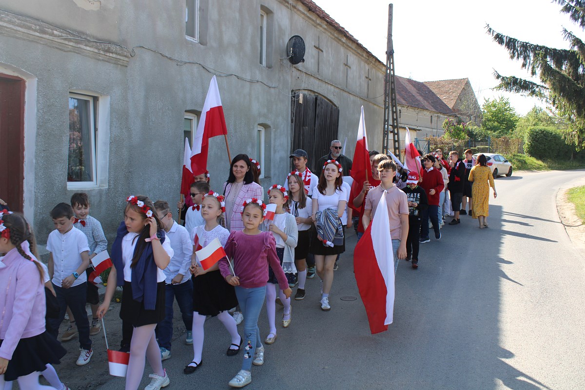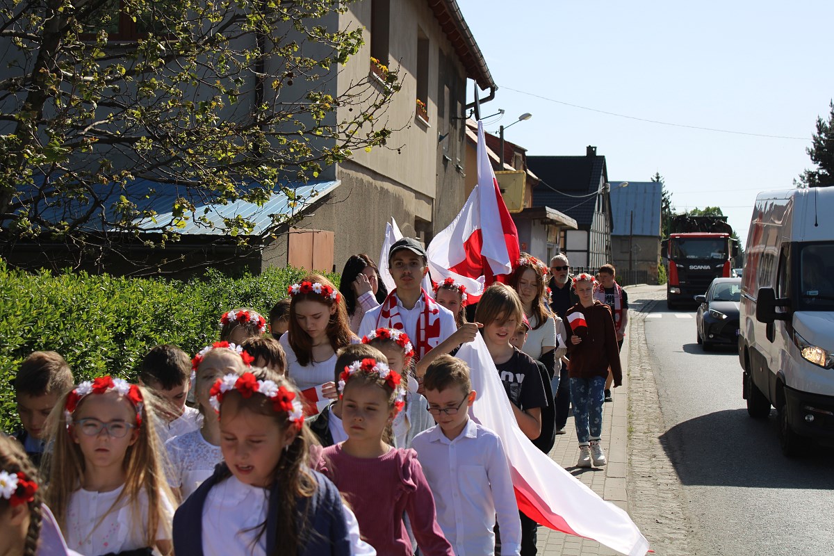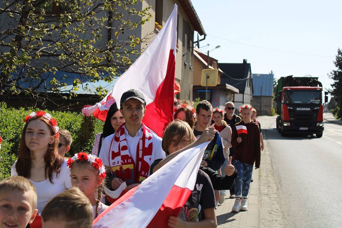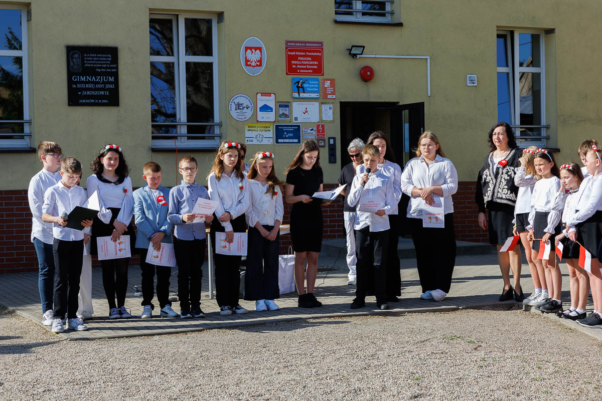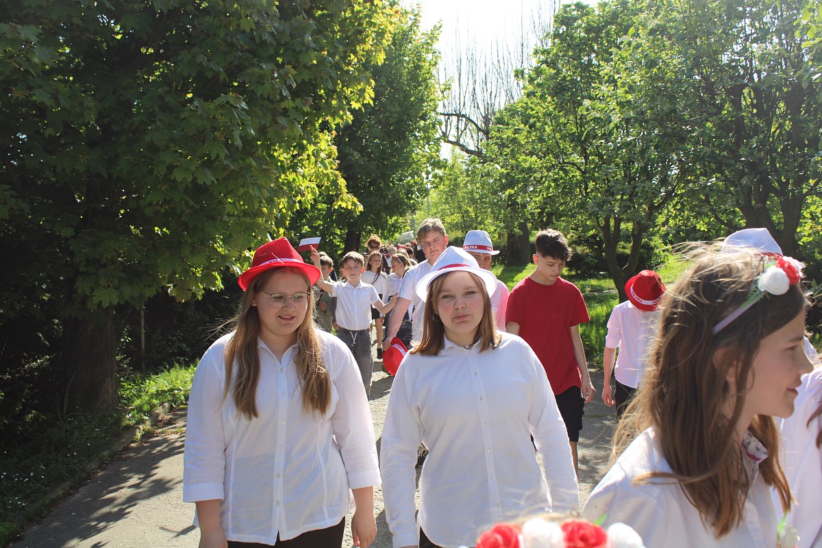 Ostatnim elementem obchodów Świąt Majowych był przemarsz Patriotycznego Korowodu Radości ulicami Jaroszowa. Biało- czerwone barwy świadczyły o nas, że jesteśmy Polakami dumnymi ze swojej ojczyzny.