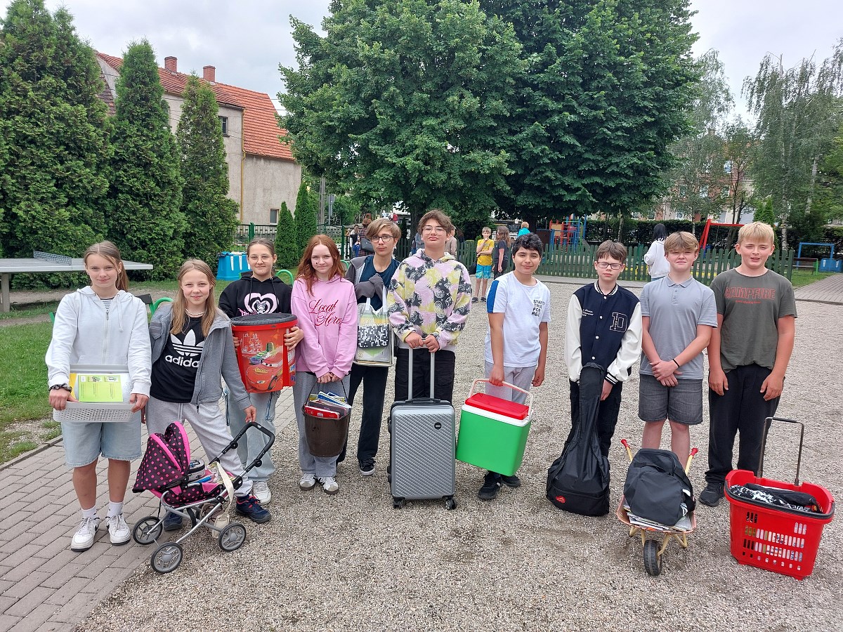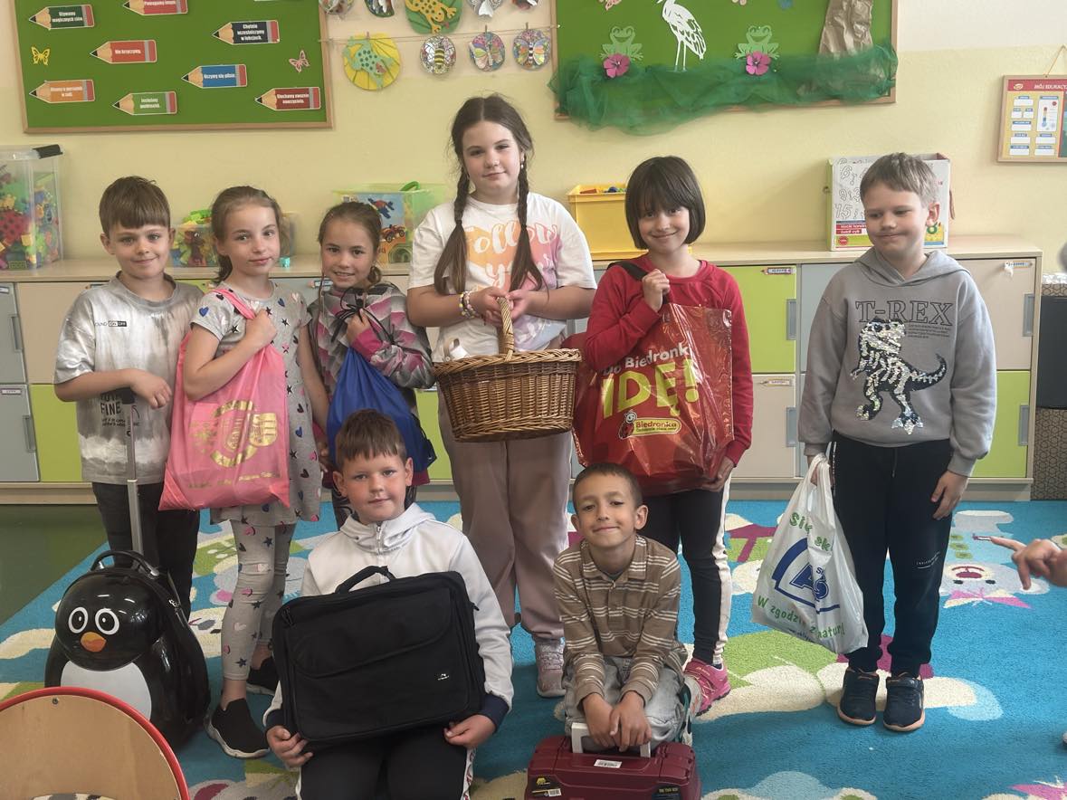 Dobra zabawa, kreatywność, śmiech i podziw innych uczniów – towarzyszyły tego dnia tym, którzy podjęli wyzwanie i spakowali podręczniki, zeszyty i przybory szkolne do koszy, wiaderek, lodówek turystycznych, walizek, szuflad, dziecięcych wózków i taczek, koszyków na zakupy i in.