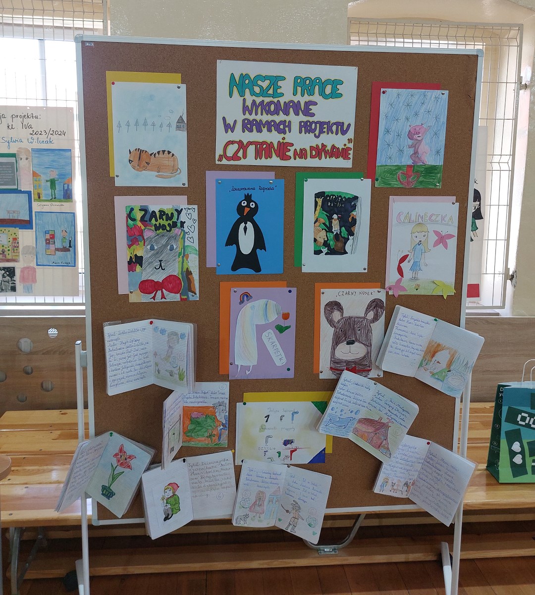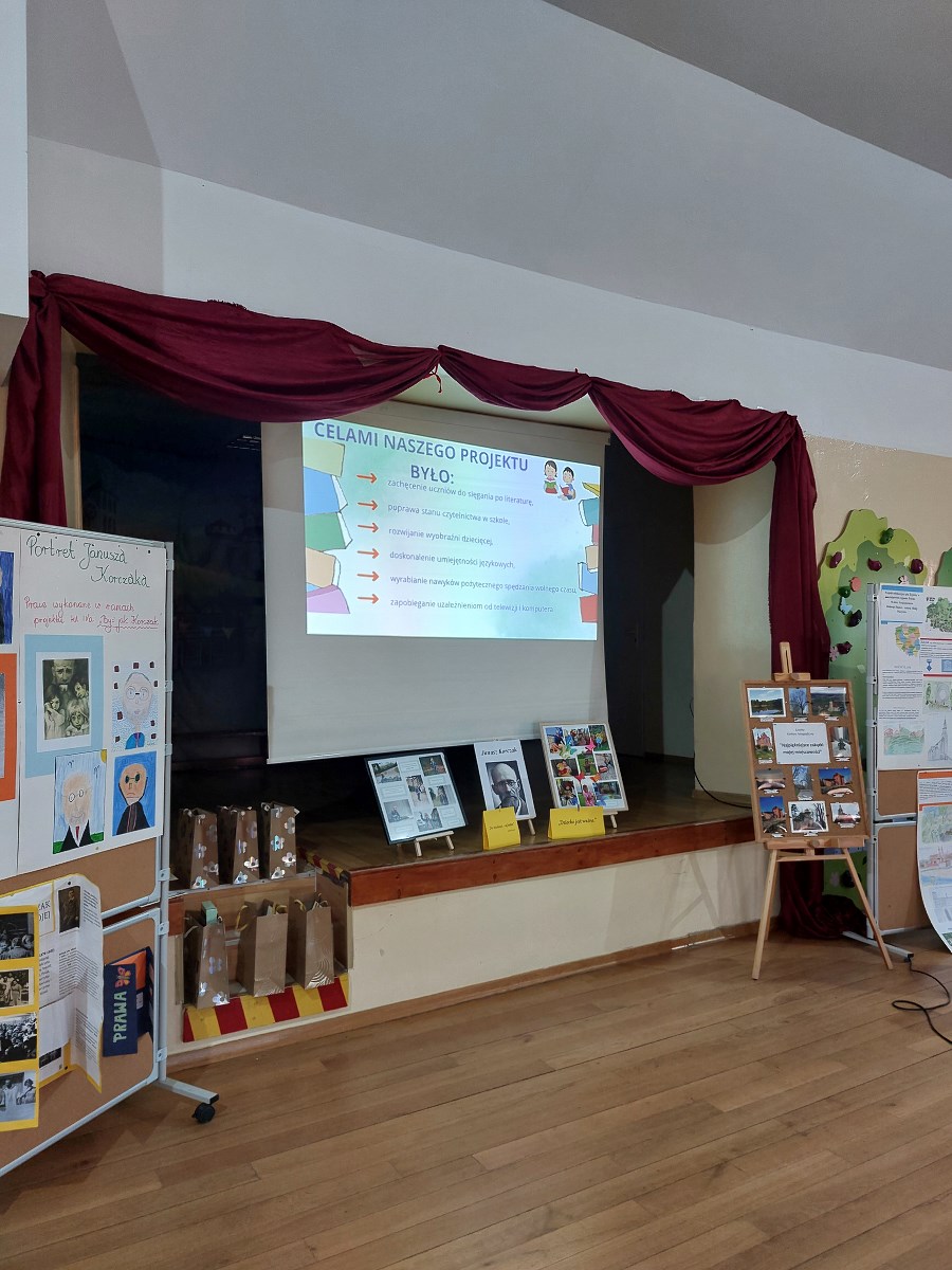 Dekorację sali gimnastycznej stanowiły prace uczniów zaangażowanych w realizację projektów.