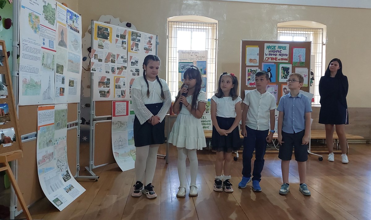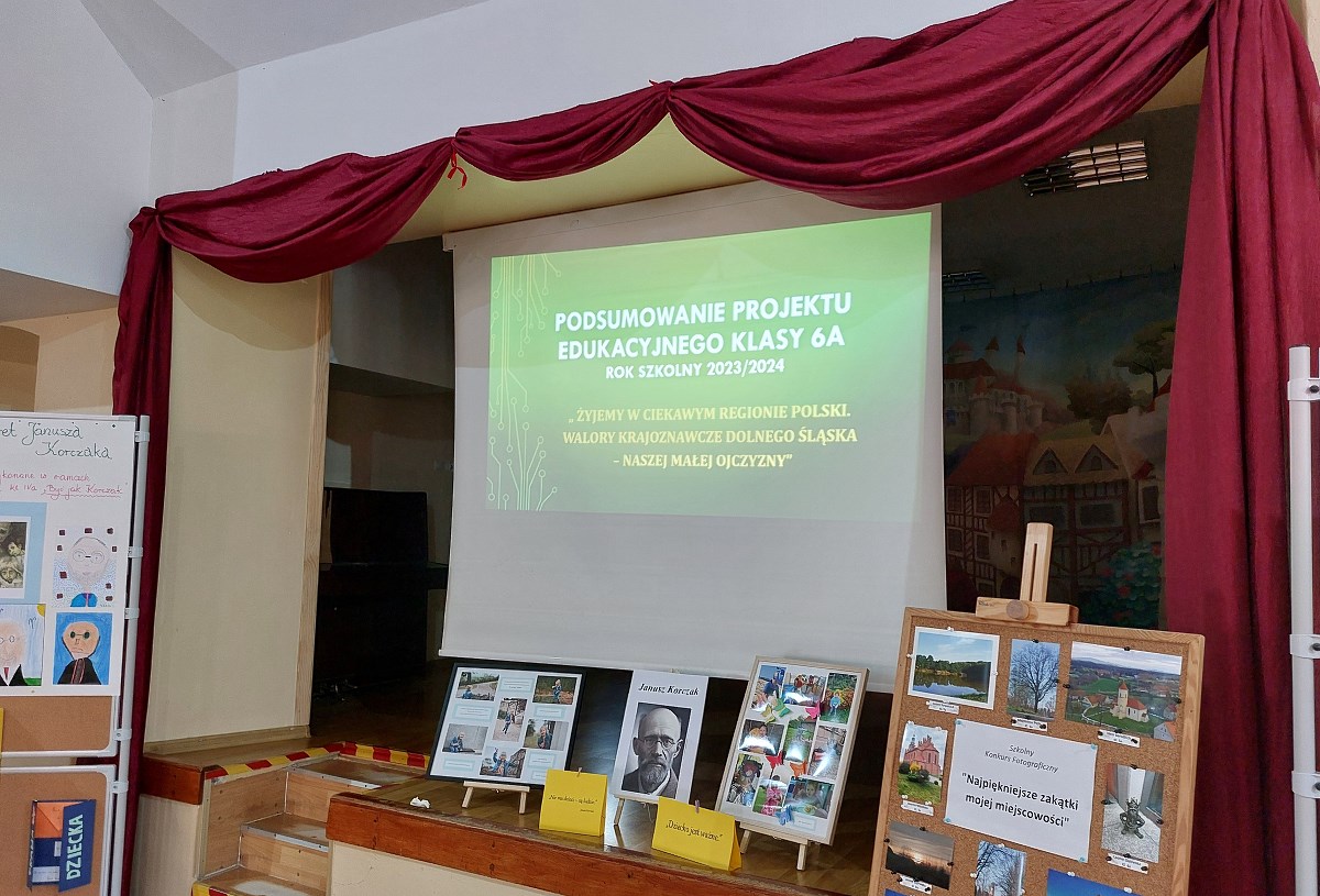 Na koniec, zaprezentowali się szóstoklasiści, których prezentację przedstawiła wychowawczyni – Monika Bytnar-Gołembiowska, a o projekcie ph. „Żyjemy w ciekawym regionie Polski. Walory krajoznawcze Dolnego Śląska – naszej Małej Ojczyzny” opowiadali prowadzący: Zuzanna Gesing-Miśkiewicz i Bartosz Burdziński.