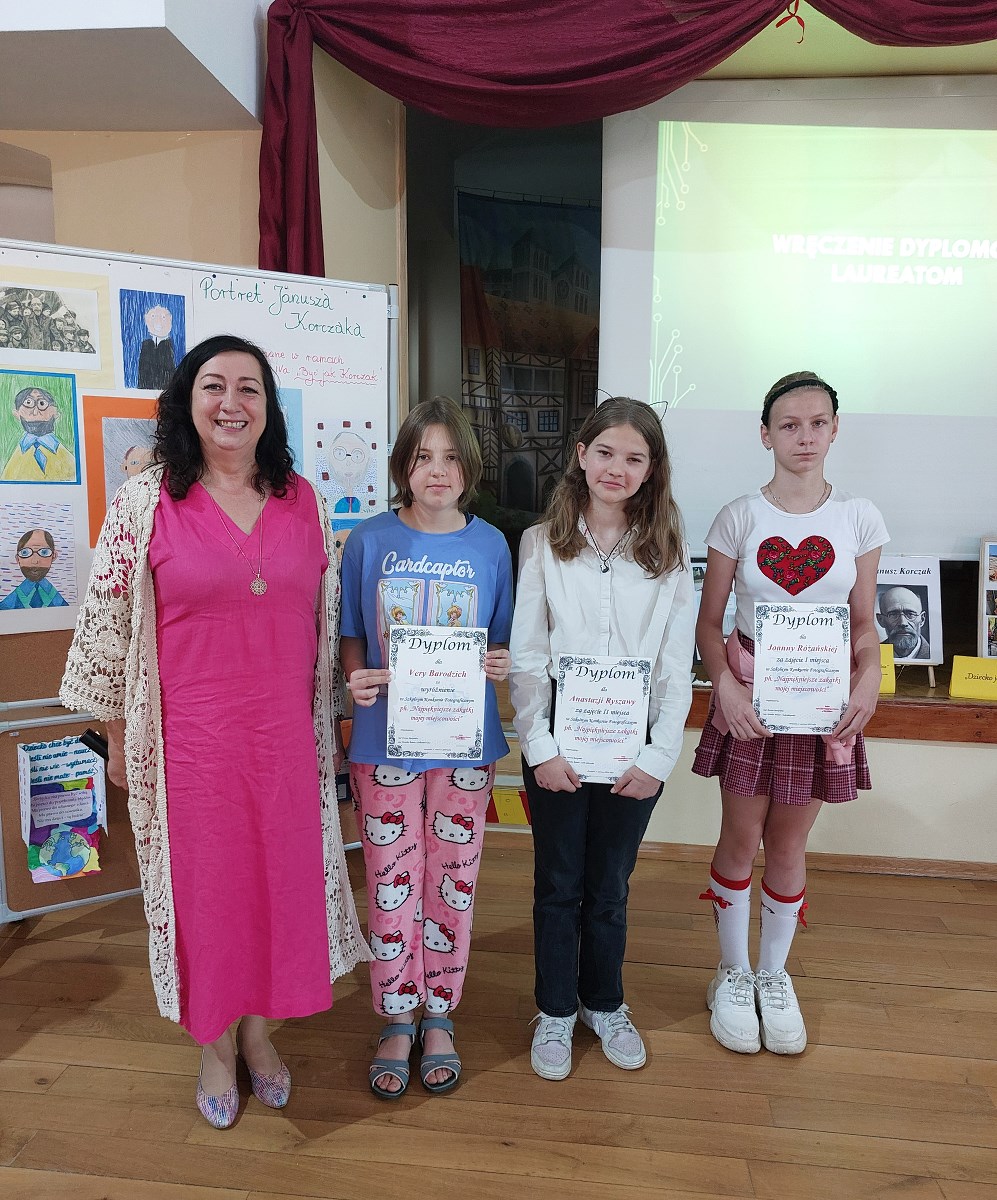 Podczas podsumowania projektu zostały wręczone także pamiątkowe dyplomy uczniom, którzy wzięli udział w następujących konkursach: