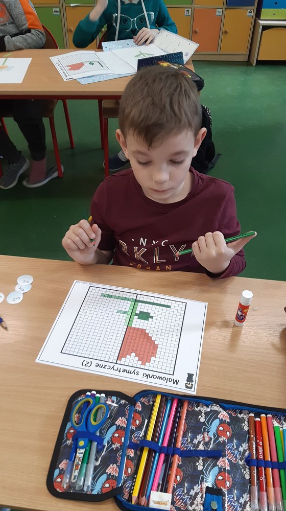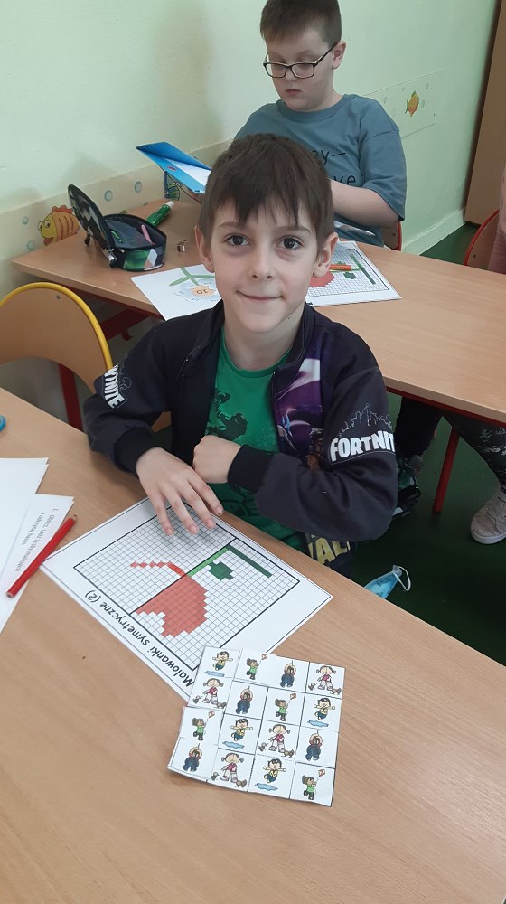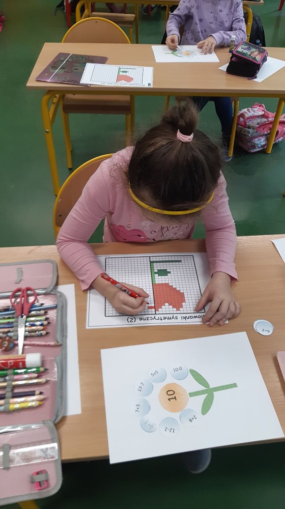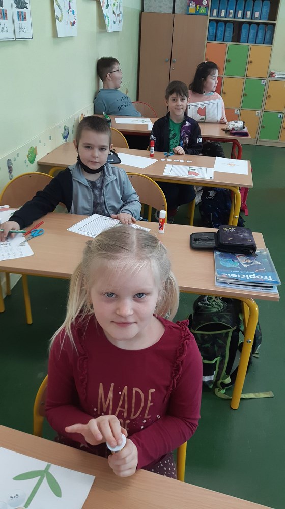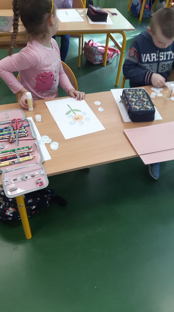 Bawiąc się, a także ucząc pierwszoklasiści przekonali się, że matematyka to nie tylko trudne zadania, ale również znakomita zabawa i pasjonująca przygoda. Uczniowie z radością i dużym zaangażowaniem rozwiązywali zagadki i łamigłówki matematyczne, które kształtowały wyobraźnię, spostrzegawczość, koncentrację, pamięć, a także doskonaliły umiejętność dodawania i odejmowania w zakresie 20.