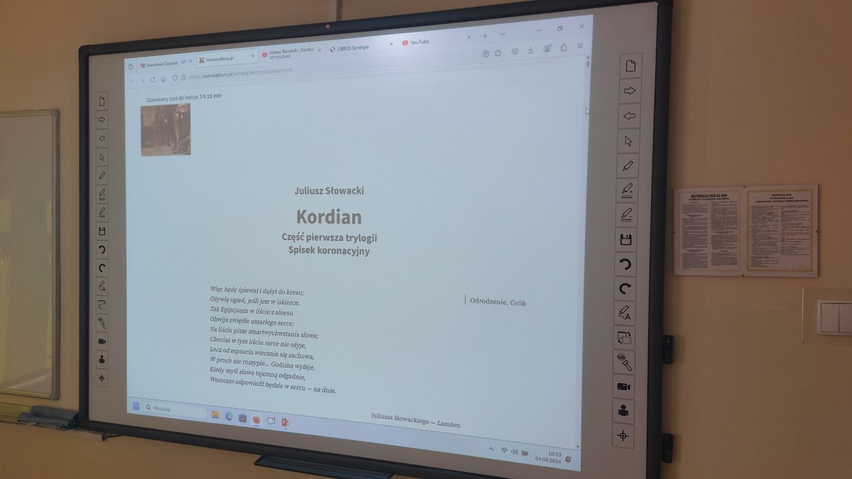 W dniach 4 i 5 września 2024 r. uczniowie z klasy 7 i 8 z Zespołu Szkolno – Przedszkolnego w Jaroszowie wzięli udział w zajęciach bibliotecznych z okazji XIII edycji ogólnopolskiej akcji czytelniczej „Narodowe Czytanie”. W tym roku czytany był dramat Juliusza Słowackiego pt. „Kordian”.