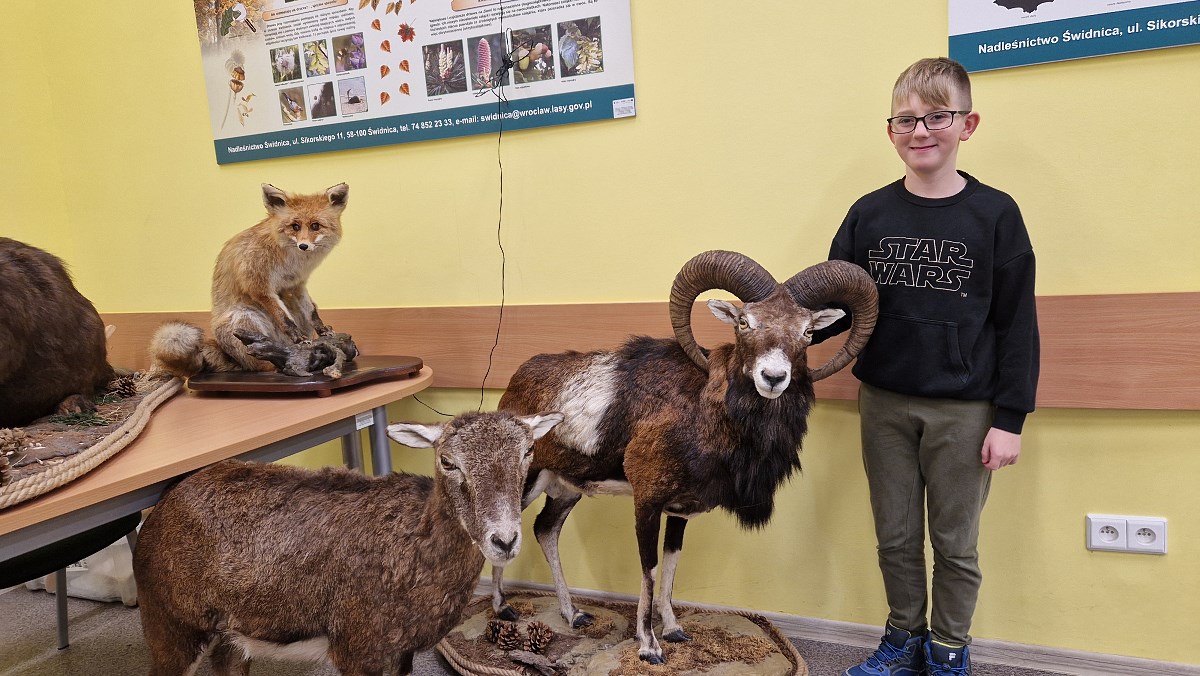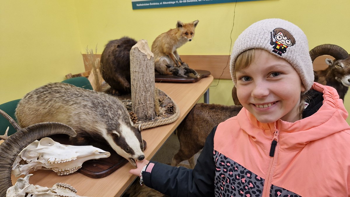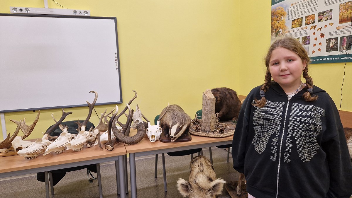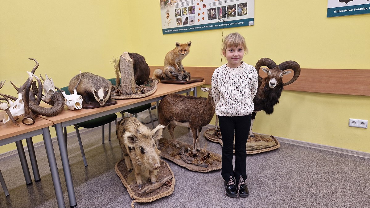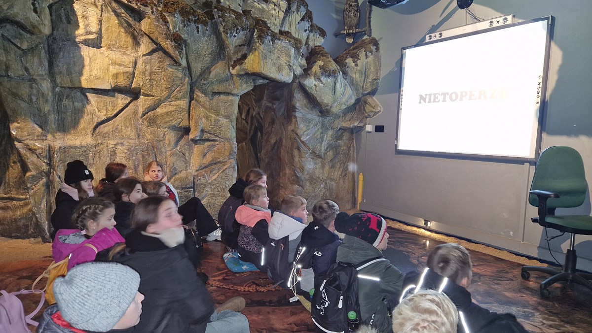 Dzieci miały możliwość aktywnie włączyć się do prezentacji, dzieląc się własną wiedzą na temat tych niewielkich, latających ssaków. Poznały zasoby przyrodnicze salki dydaktycznej, w której można było przyjrzeć się porożom różnych gatunków jeleniowatych, ślimom muflona i skórom dzikich leśnych zwierząt. A to wszystko pod czujnym okiem i z komentarzem pani Moniki Drozdowskiej- starszej specjalistki ds. ochrony przyrody i edukacji leśnej.