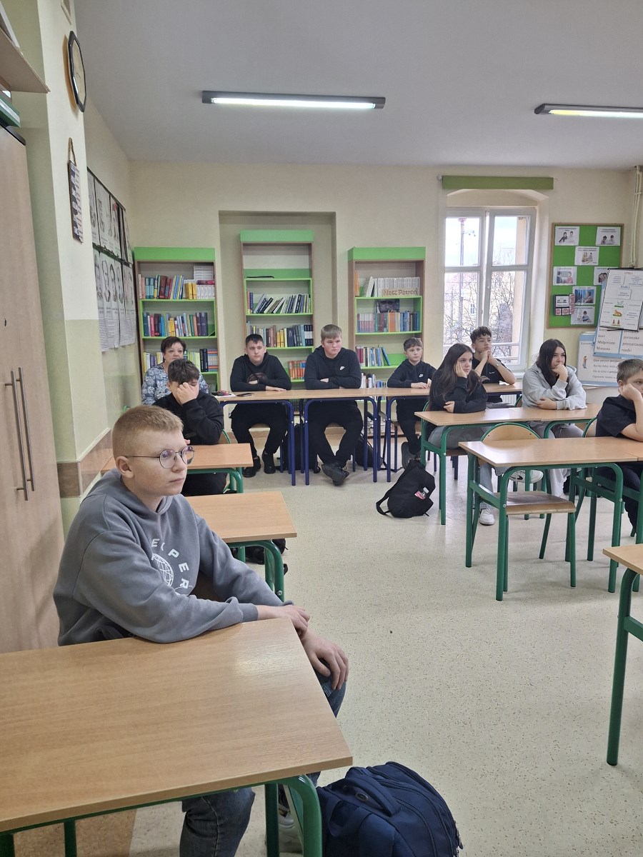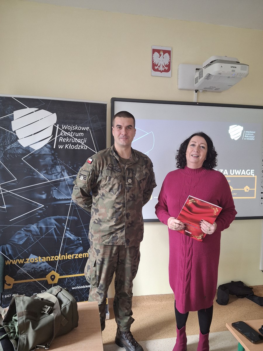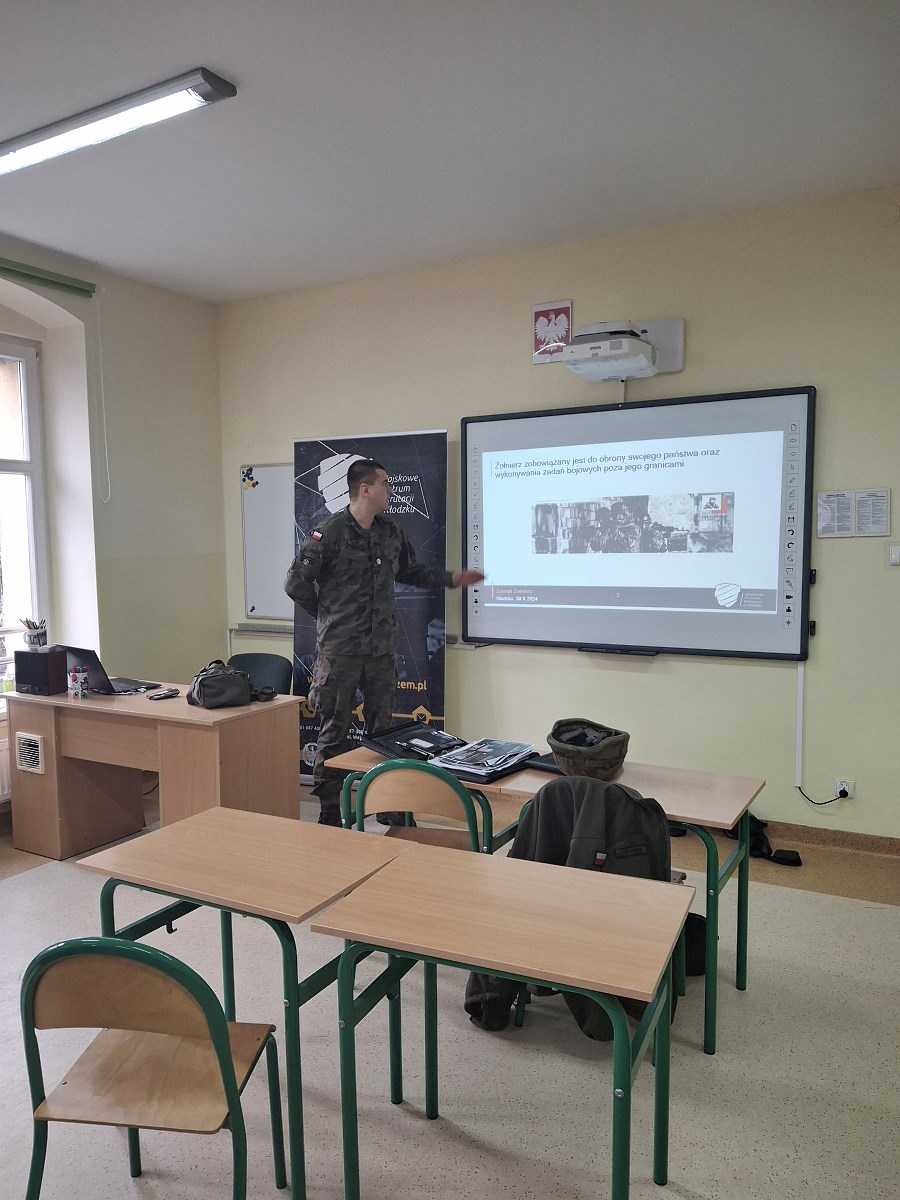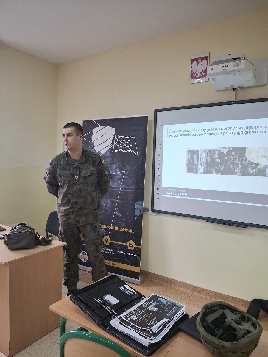 W dniu 05.12.2024 r. w ramach doradztwa zawodowego w ZSP w Jaroszowie odbyła się prelekcja dla ósmoklasistów nt. „Zawód żołnierz” przeprowadzona przez starszego kaprala Bartosza Jankiewicza z Wojskowego Centrum Rekrutacji w Kłodzku.