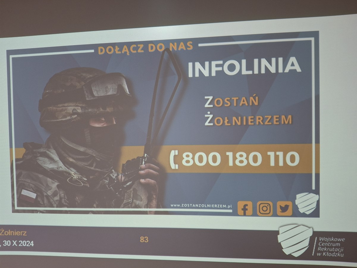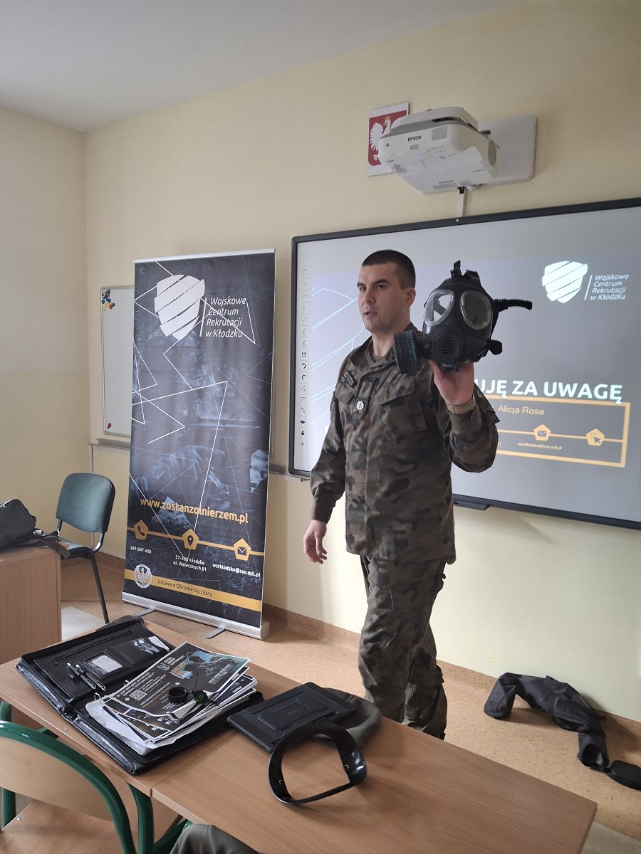 Celem spotkania było przedstawienie uczniom wizerunku sił zbrojnych jako atrakcyjnego i innowacyjnego miejsca do podjęcia pracy i służby oraz rozwoju kariery zawodowej.