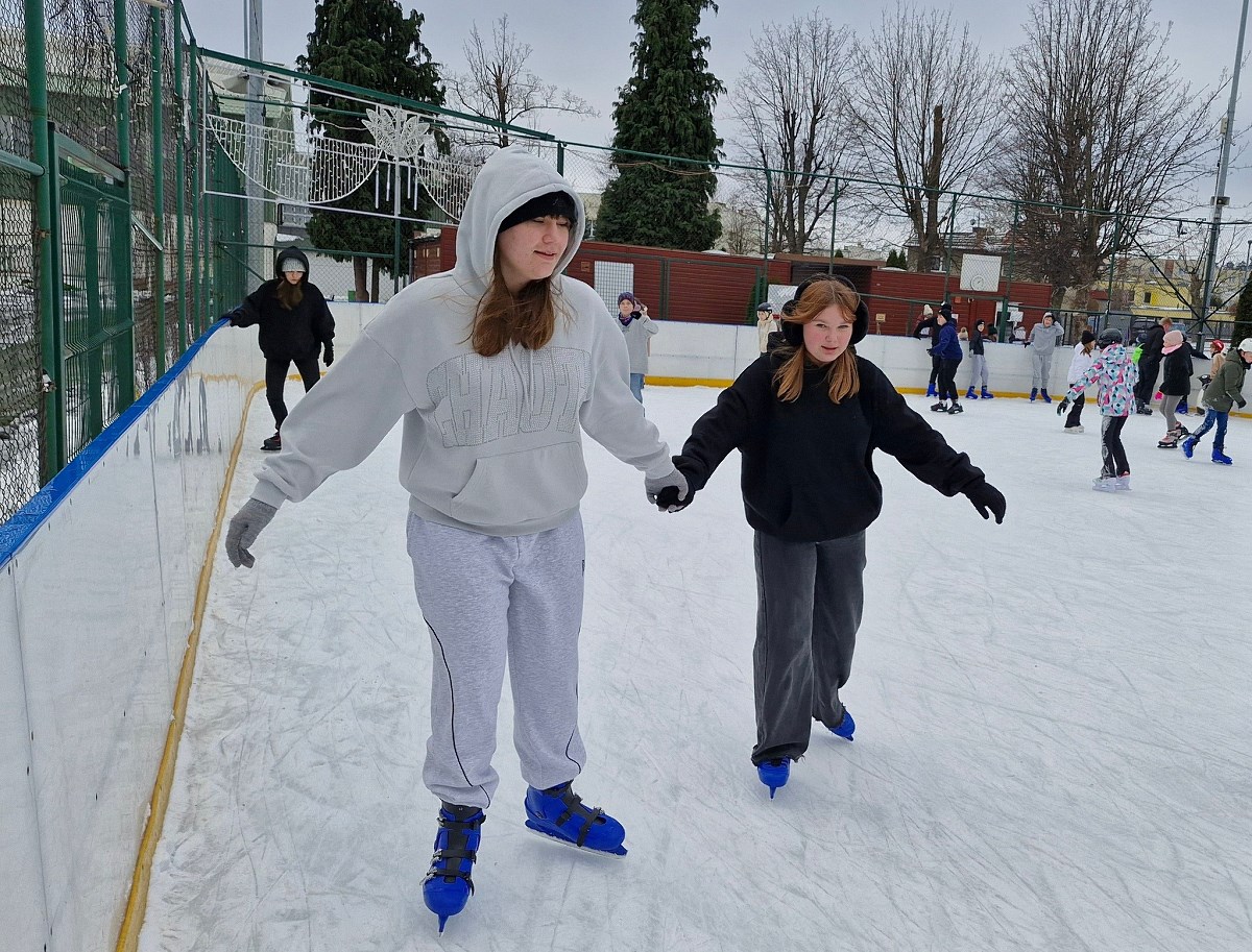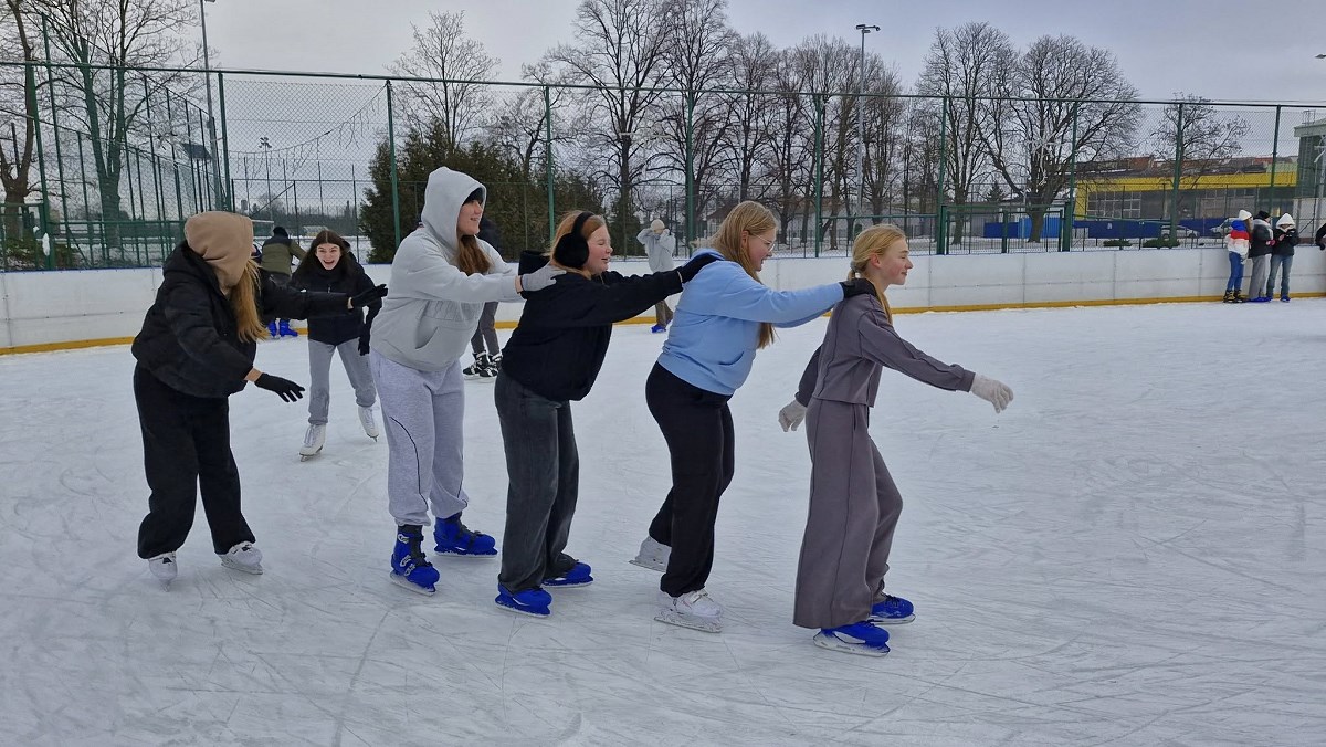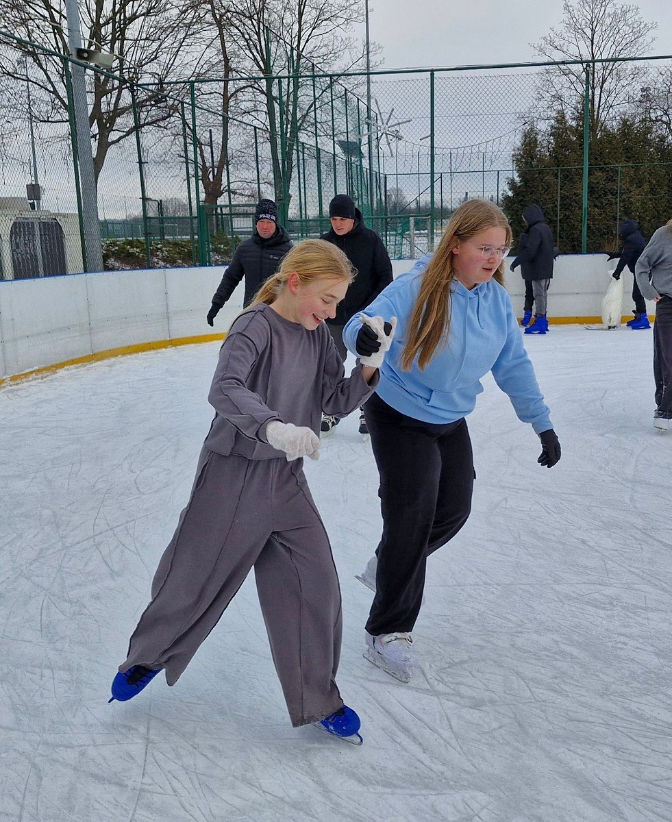 Uczniowie podczas pobytu na lodowisku mieli okazję, nie tylko aktywnie spędzić czas w gronie przyjaciół, ale także doskonalić swoje umiejętności jazdy na łyżwach. Wszyscy uczniowie w dobrych humorach i pełni wrażeń bezpiecznie wrócili do szkoły.