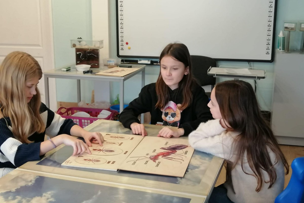 Zajęcia stacjonarne odbywały się w dobrze wyposażonych w pomoce naukowe pracowniach. Dzieci miały możliwość pracować z mikroskopami, obserwowały proces fotosyntezy, robiły mydełka, zapachy do szafy z wykorzystaniem naturalnych suszów kwiatowych i owocowych. Na zajęciach obserwowały również życie mrówek w prowadzonej przez ośrodek hodowli.