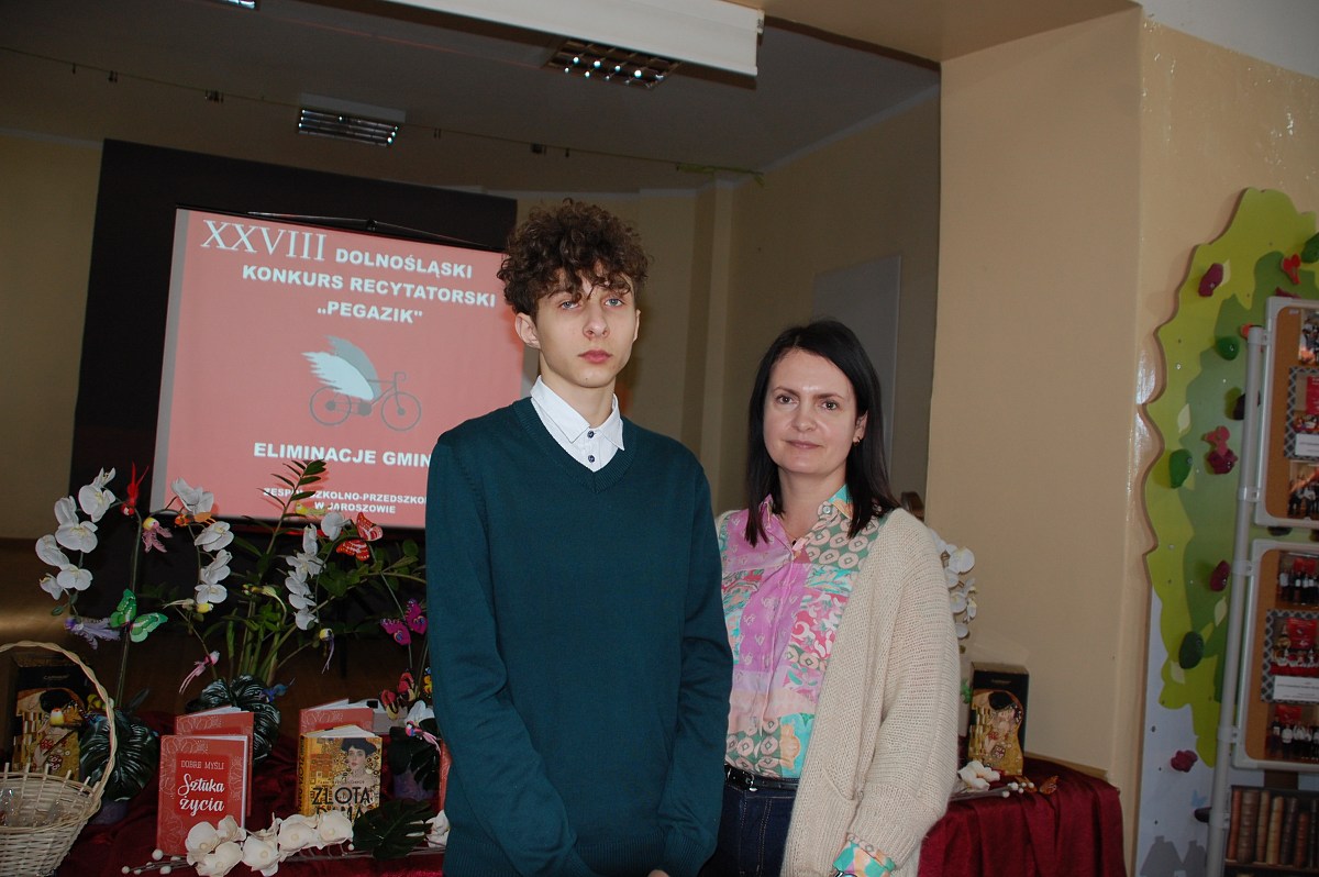 Dnia 6 marca 2025 r. - w sali gimnastycznej Zespołu Szkolno – Przedszkolnego w Jaroszowie zostały zorganizowane eliminacje gminne XXVIII Dolnośląskiego Konkursu Recytatorskiego „Pegazik” w dwóch kategoriach wiekowych.