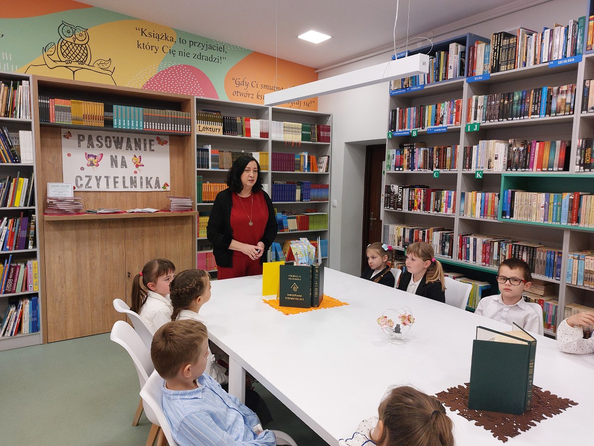 Pasowania nowych czytelników dokonała pani dyrektor Beata Jankiewicz w obecności licznie przybyłych Rodziców uczniów.